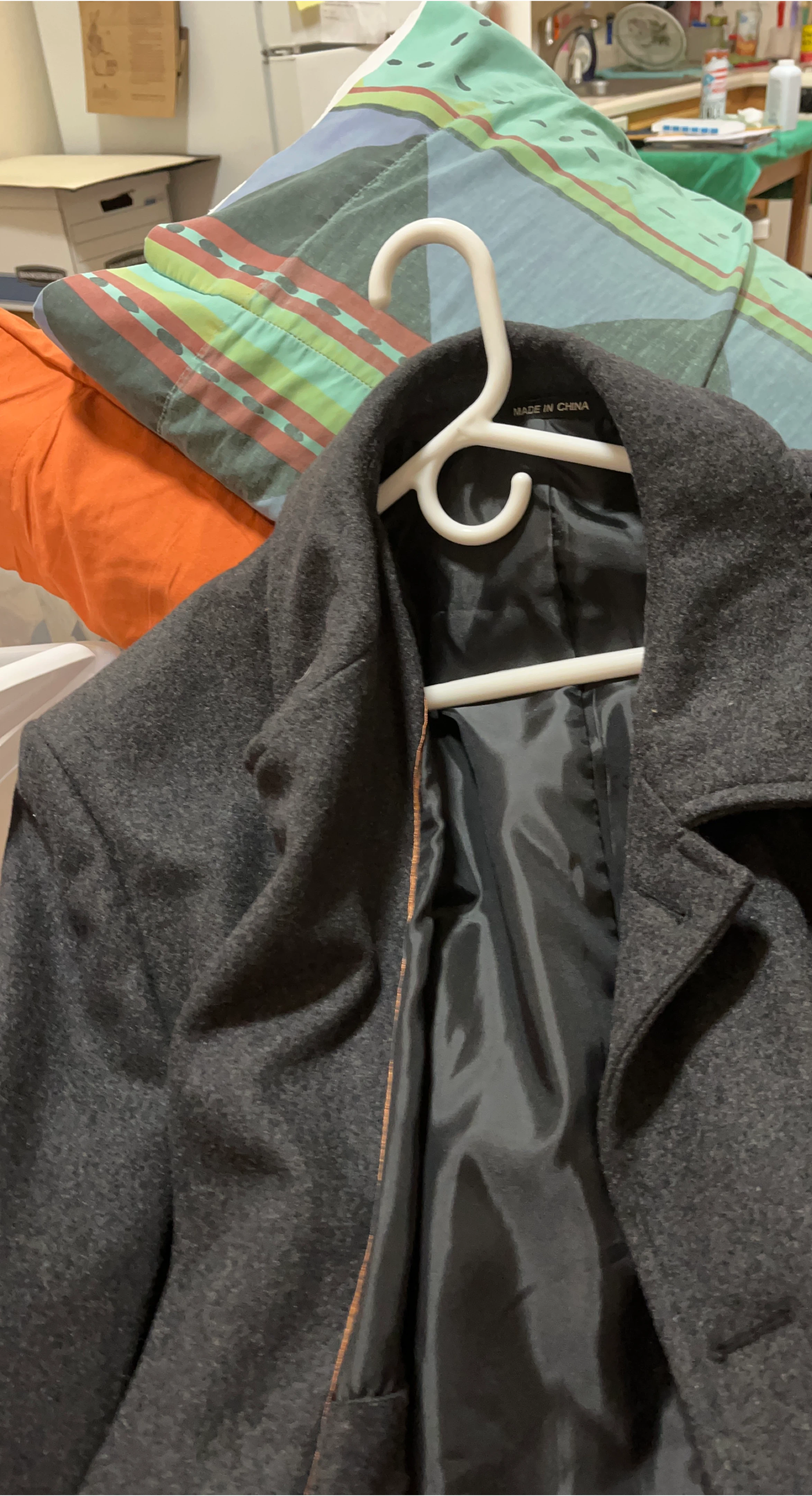 60Selling a gray overcoat. It is in good condition and ready for a new home!