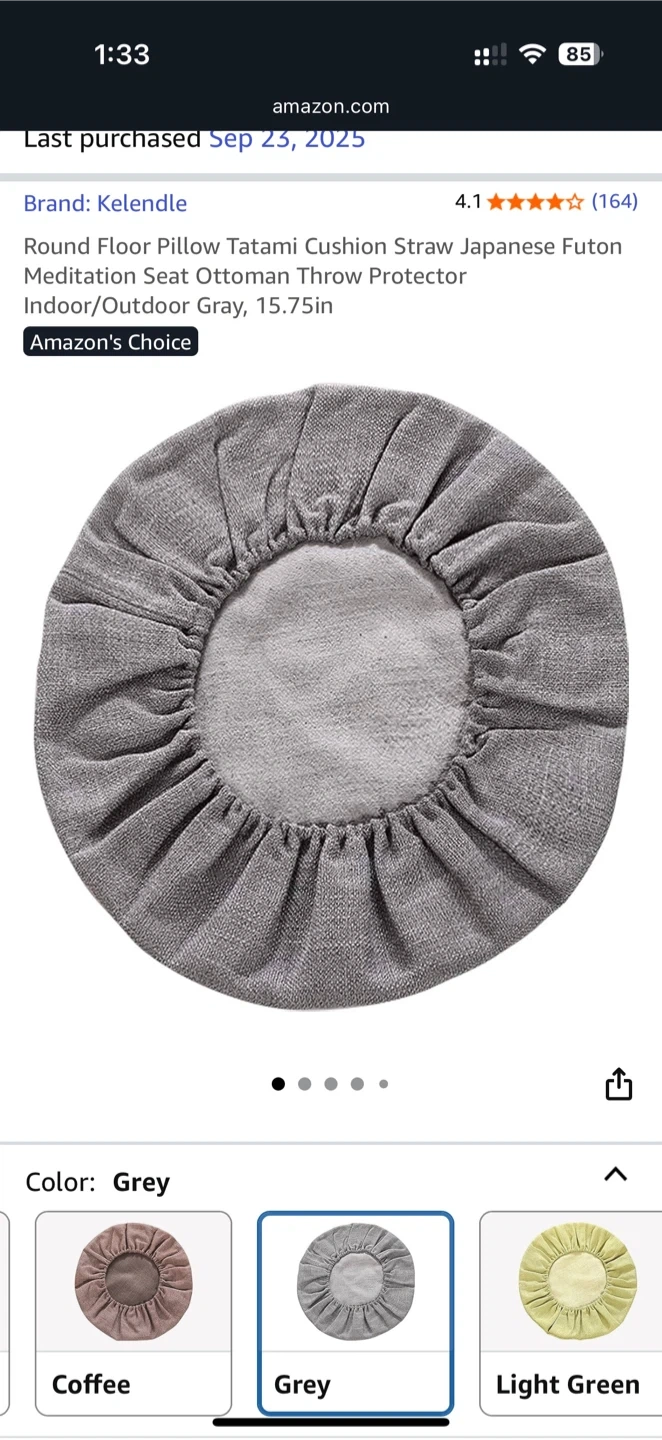 Colors available: Skyblue, gray, light purple, dark purple I am selling round meditation foam cushion with new cover that i bought from Amazon. Cover+foam for $20 each, and $10 for just the foam. https://www.amazon.com/Kelendle-Cushion-Japanese-Meditation-Protector/dp/B08FMLNT36 Cover is currently sold for $11.5+tax1=12.5 and it is new ordered today. https://www.amazon.com/GoTo-Foam-Diameter-Upholstery-Cushion/dp/B07X8G56WG Foam was bought last year and same size foam is sold for $24.84+tax2.16=$27 on Amazon. Total should be $40, but I am selling this on half price just for the sake of moving out.