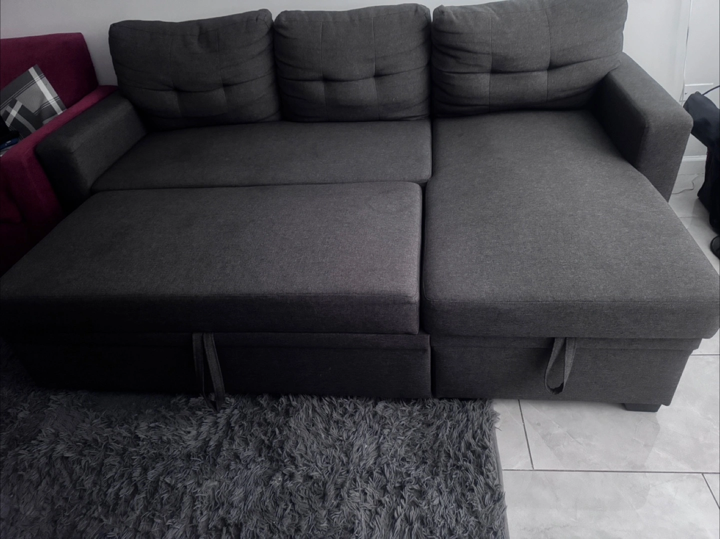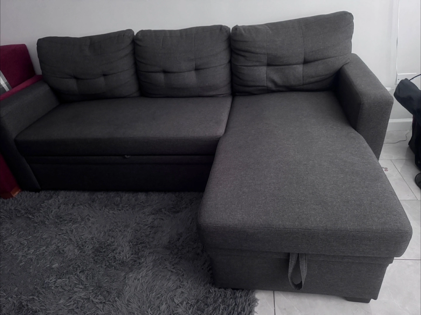 Soges Queen Platform Bed with Upholstered Headboard - Grey
