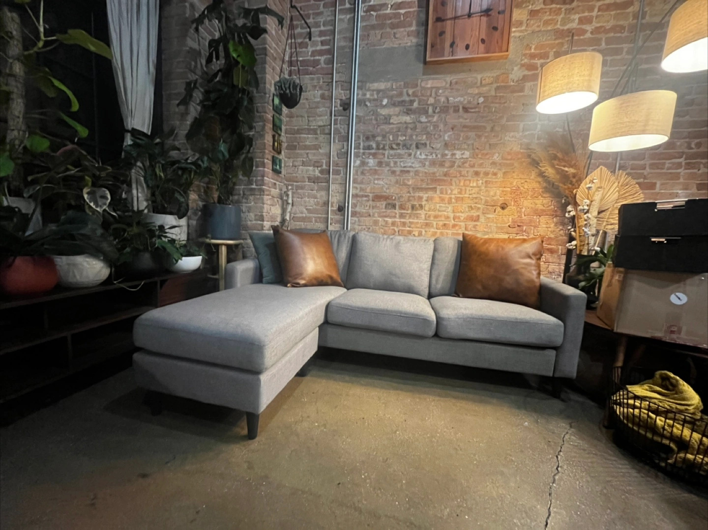 Selling a comfortable gray sectional sofa with a chaise lounge! It's in good condition and perfect for a living room or den. The sectional features a chaise lounge on one side (can be positioned on either side), making it a great place to relax. The sofa has a neutral gray color that will complement any decor. Pet/Kid friendly fabric — Liquid and tear resistant, removable washable covers, does not attract pet hair.
