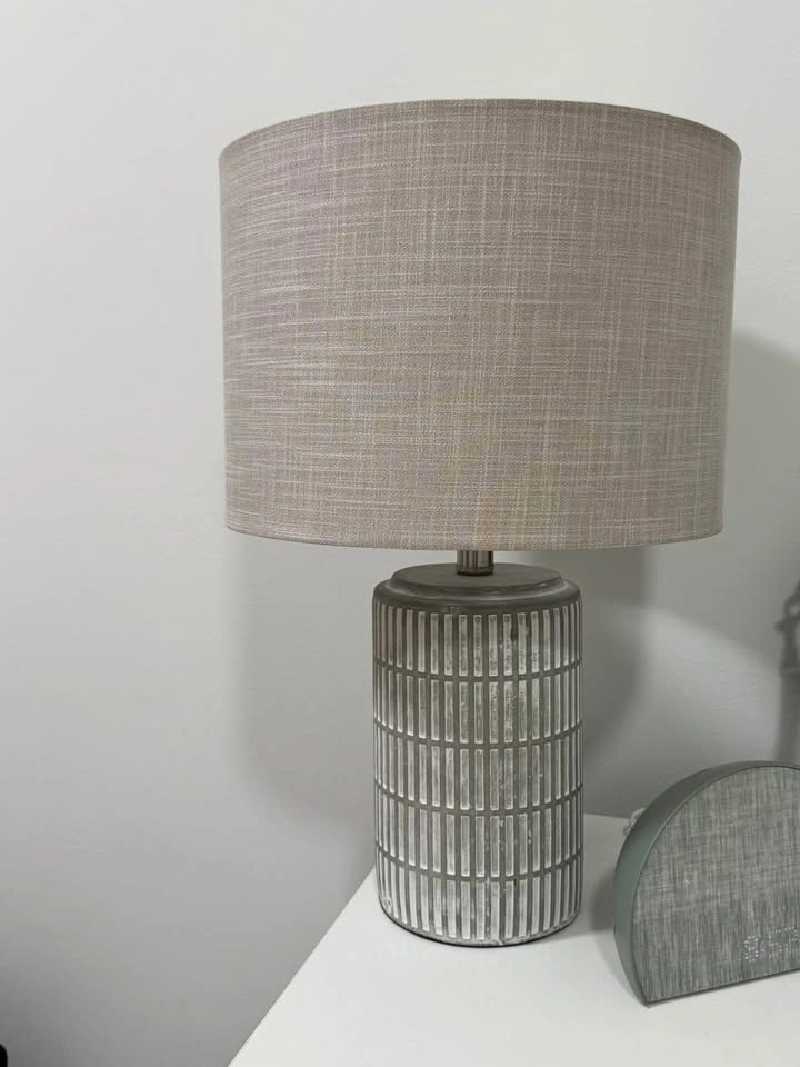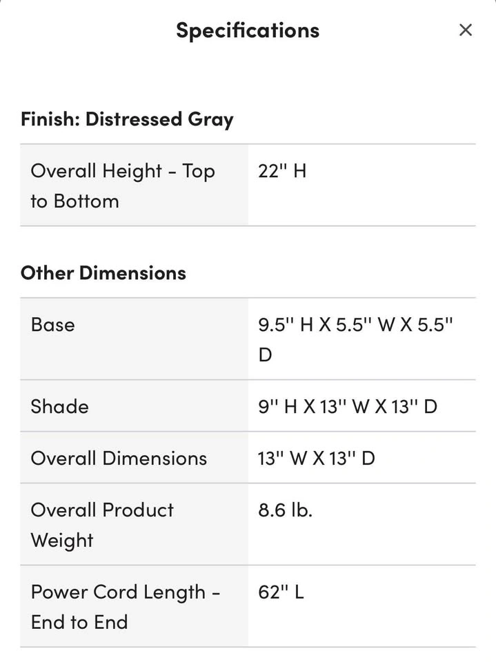 81Distressed gray side table lamp by Kelly Clarkson Home on Wayfair. Great condition. Must pick up in fidi, cash or Venmo