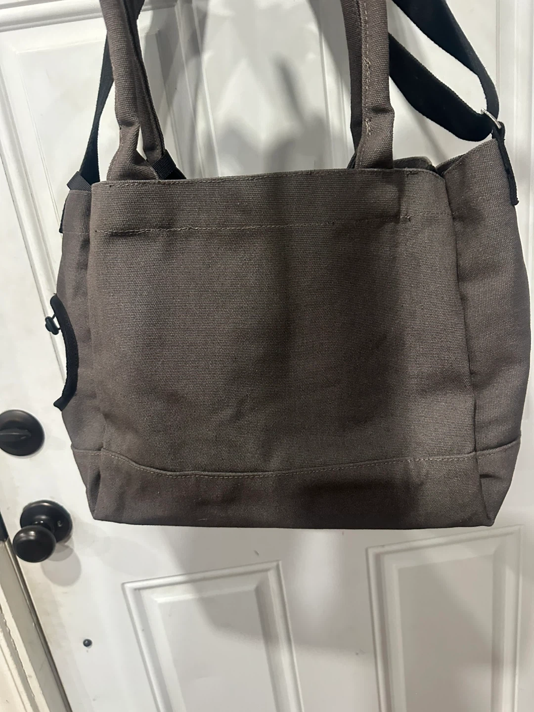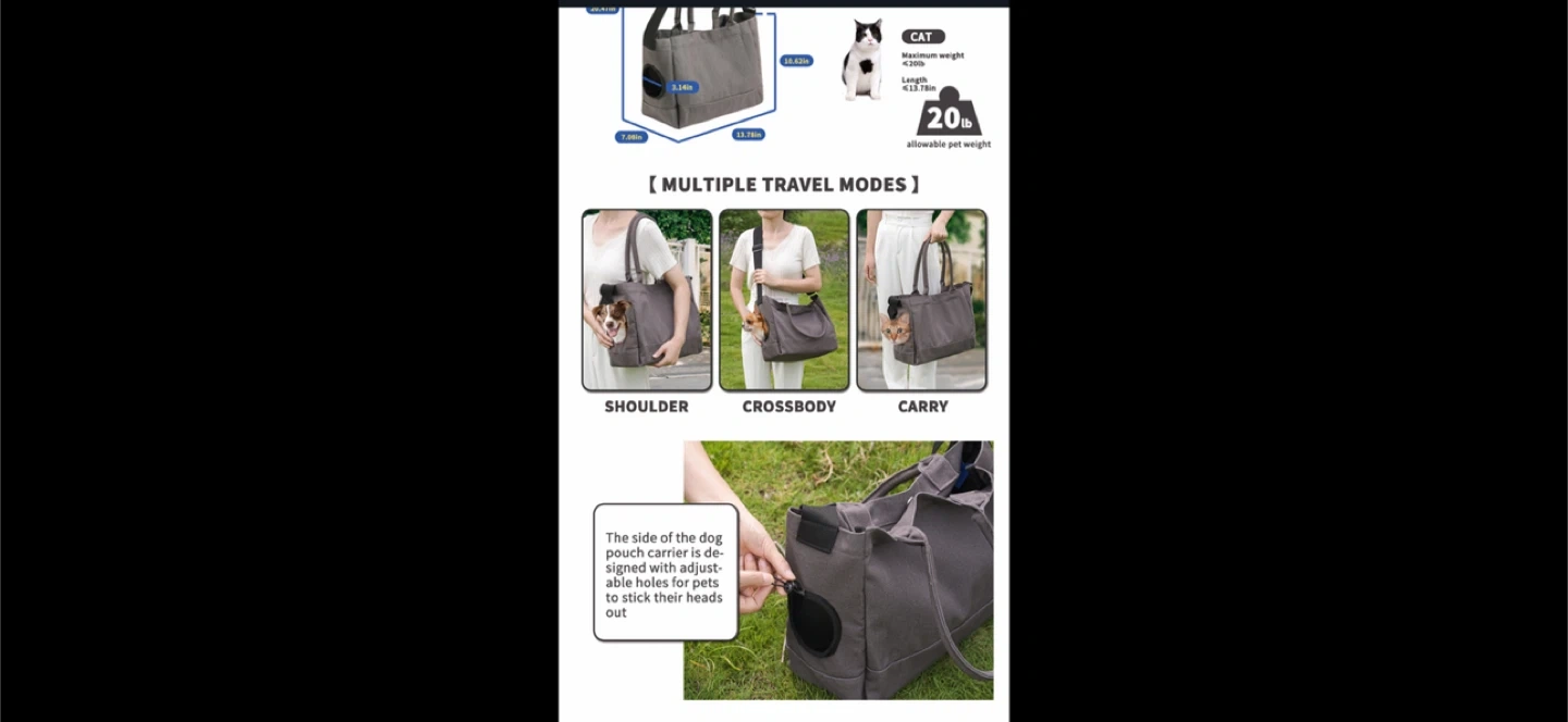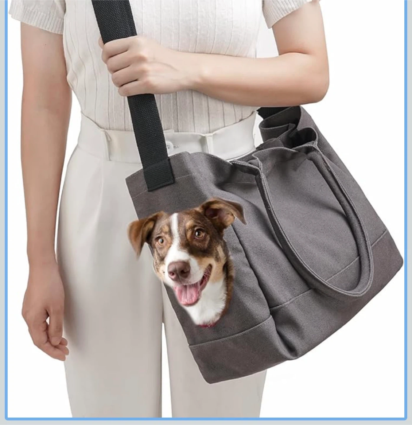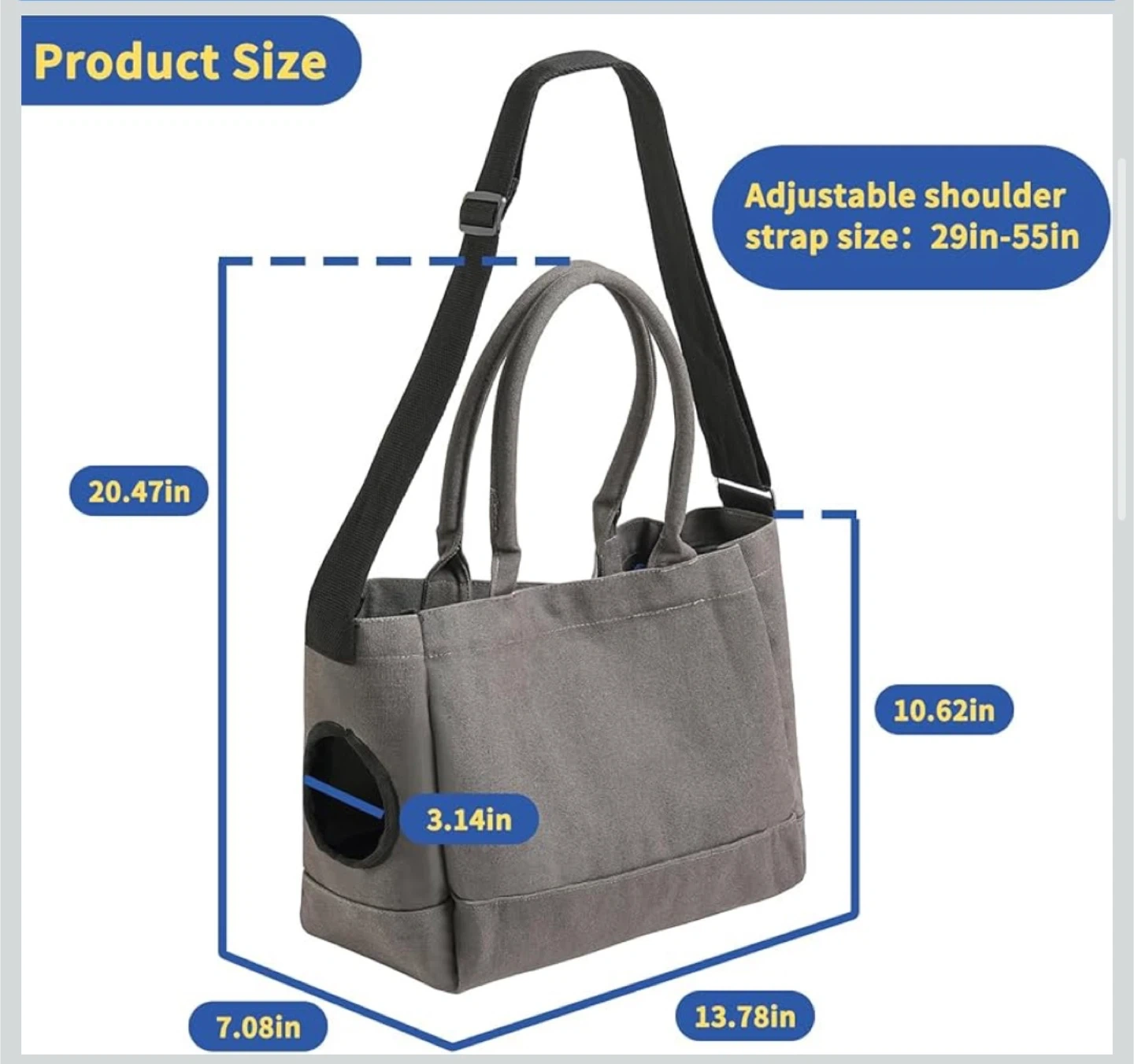 This gray dog carrier tote bag is perfect for taking your furry friend on the go! shoulder strap are adjustable