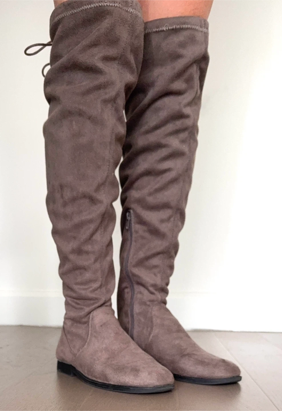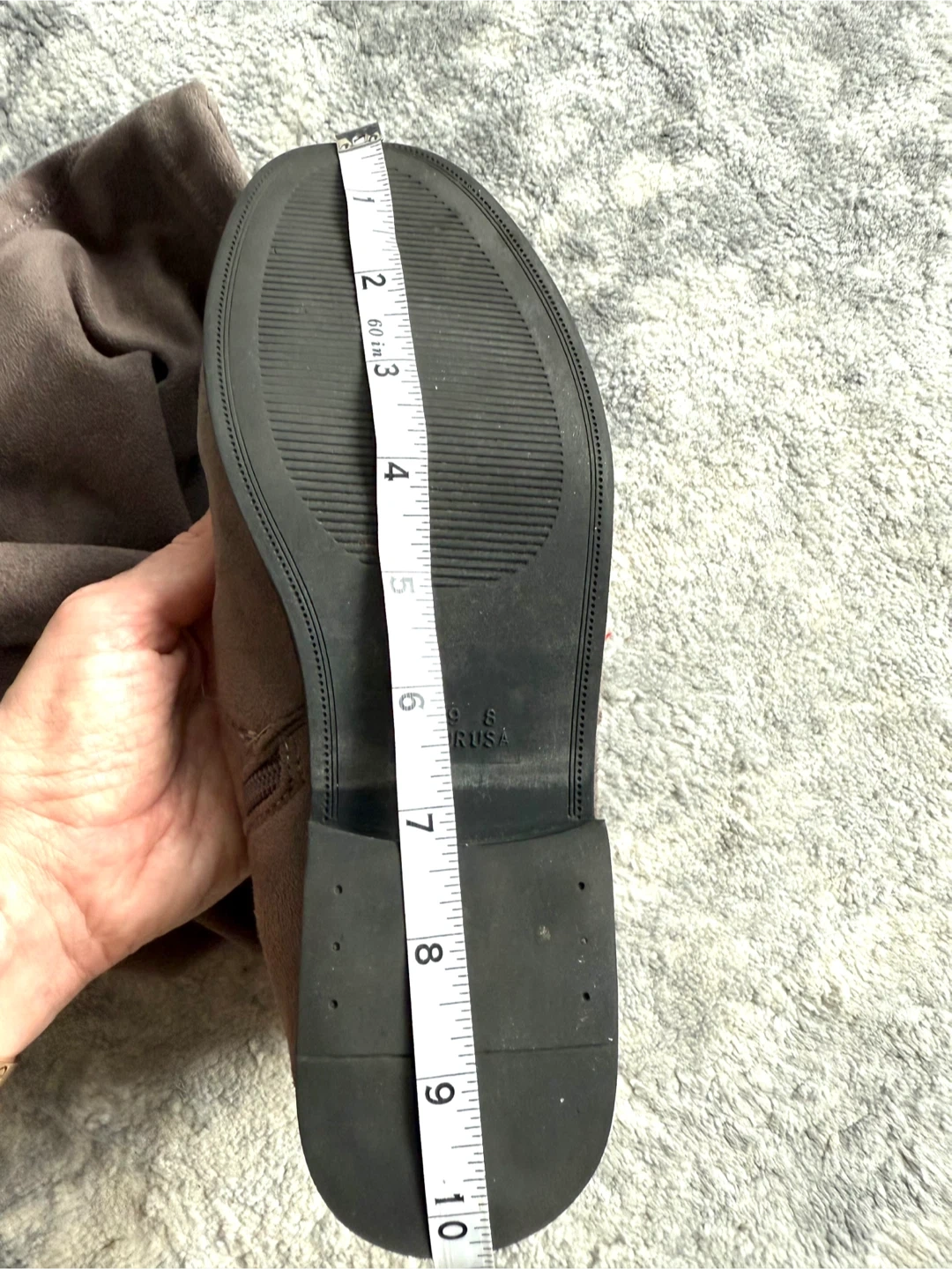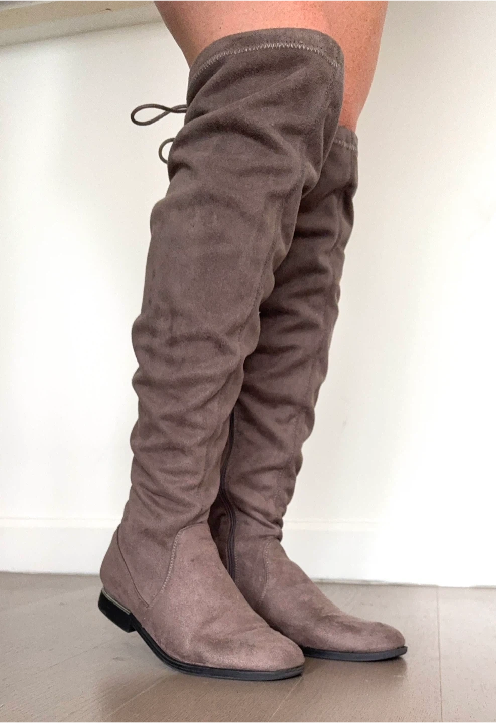 78These taupe over-the-knee boots are in great condition and ready for a new home! They feature a comfortable, stretchy material and a stylish design that will elevate any outfit. Perfect for fall and winter! Size: UK 6, EUR 39, USA 8 22 inches long from sole to top