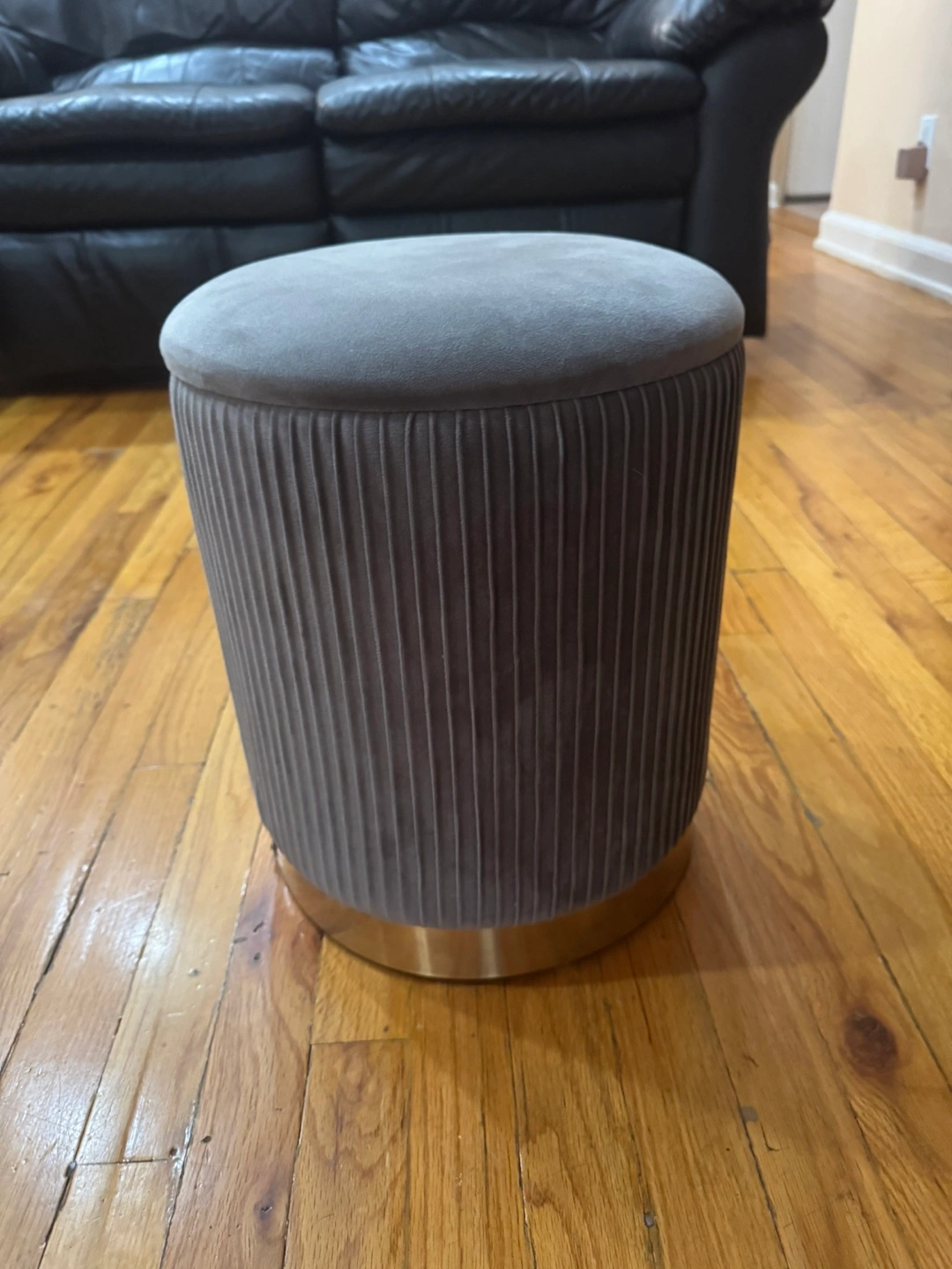 Glass Top Dining Table with Gold Legs & 4 Gray Chairs