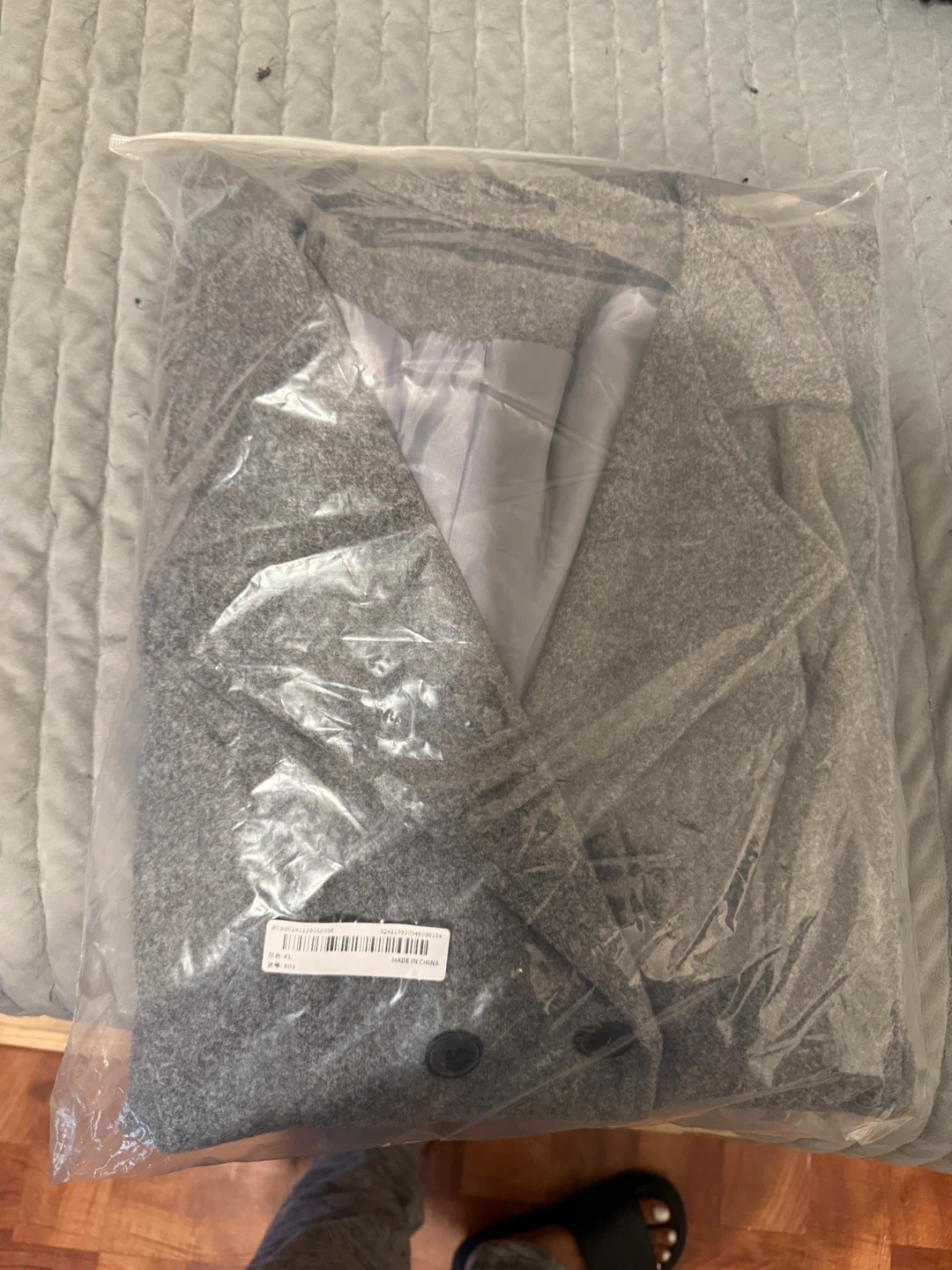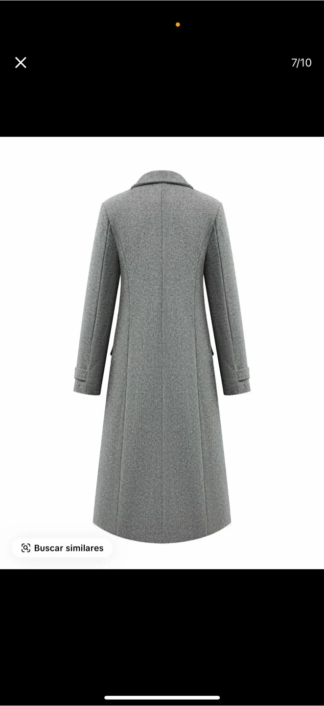 Selling a stylish gray long coat. It's new and ready to keep you warm! The coat features a classic double-breasted design with button details.