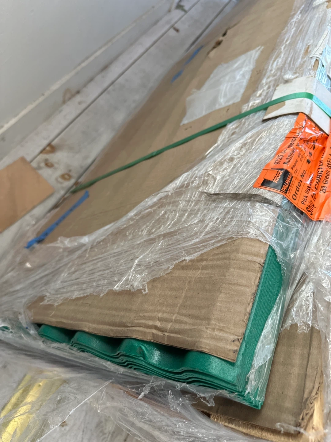 I have some green corrugated roofing sheets available. They measure 8 feet in length and 26 inches in width. Perfect for your roofing needs!