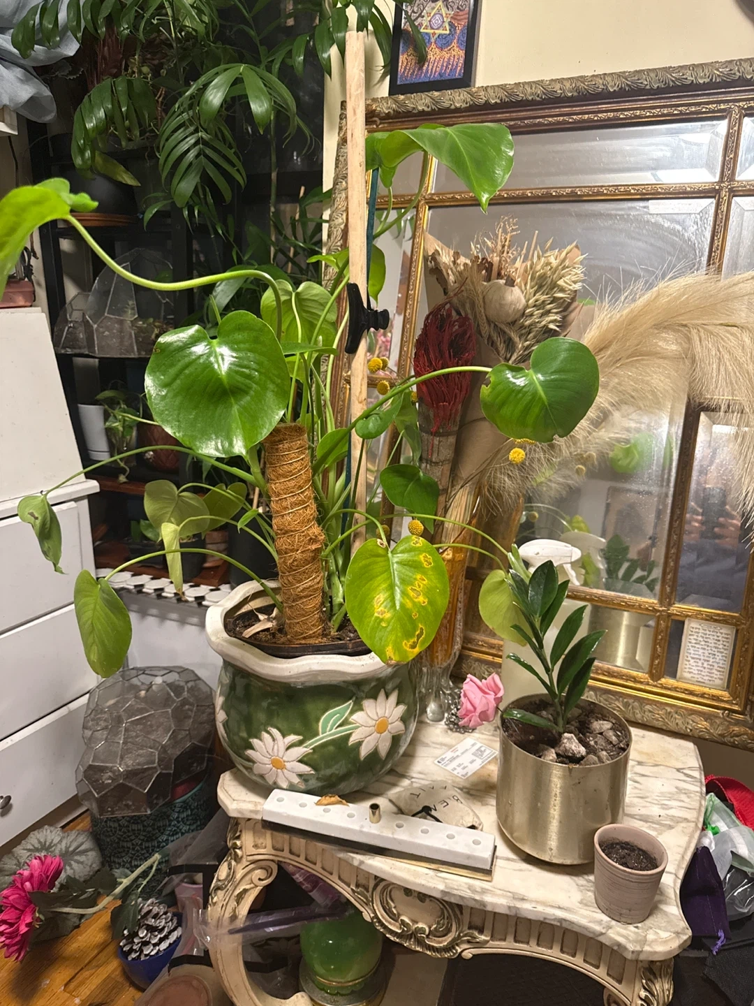Selling a green flower pot with a white daisy design. It's perfect for adding a touch of nature to your home or garden. It's in great condition and ready for a new plant!