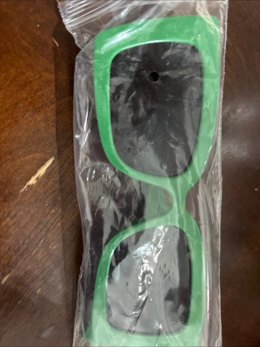 Selling a pair of sunglasses with a bright green frame! They are still sealed in their original packaging and have never been worn. Perfect for adding a pop of color to your look!