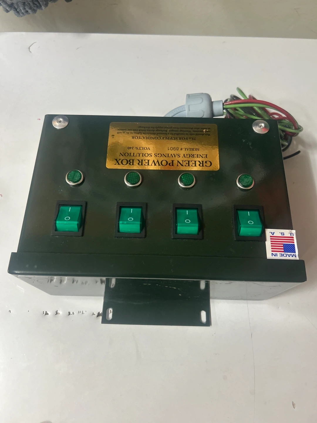 115Selling a Green Power Box Energy Savings Solution. It has a serial number of 8901 and is rated for 240 volts. Please note that the box should only be installed by a licensed electrician.
