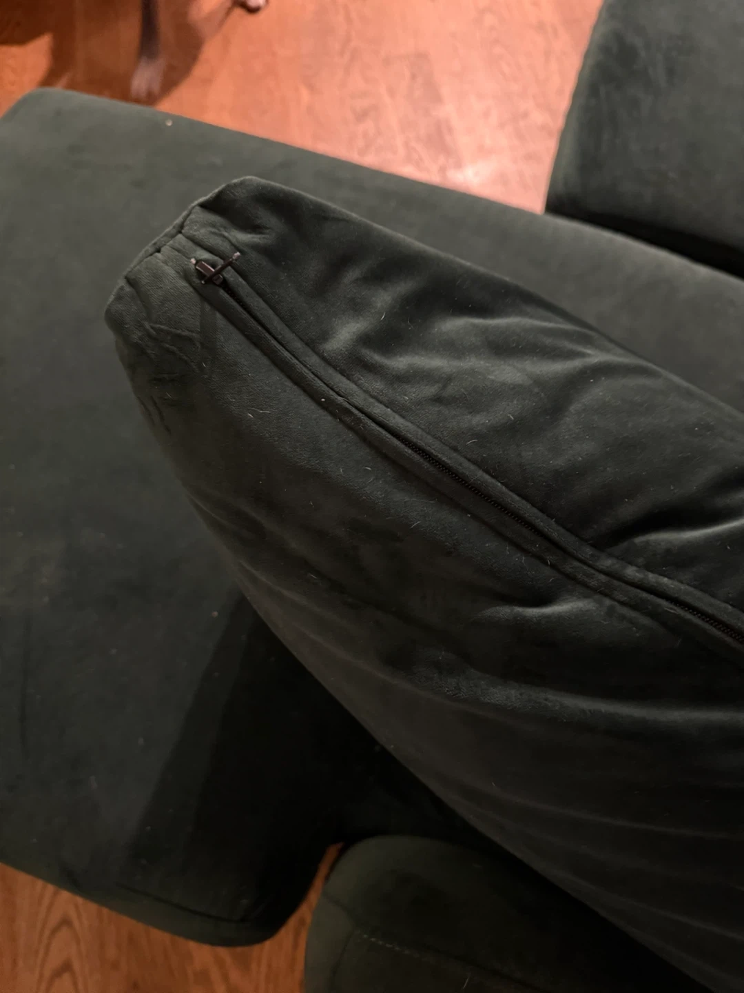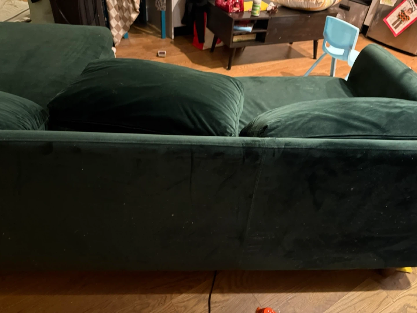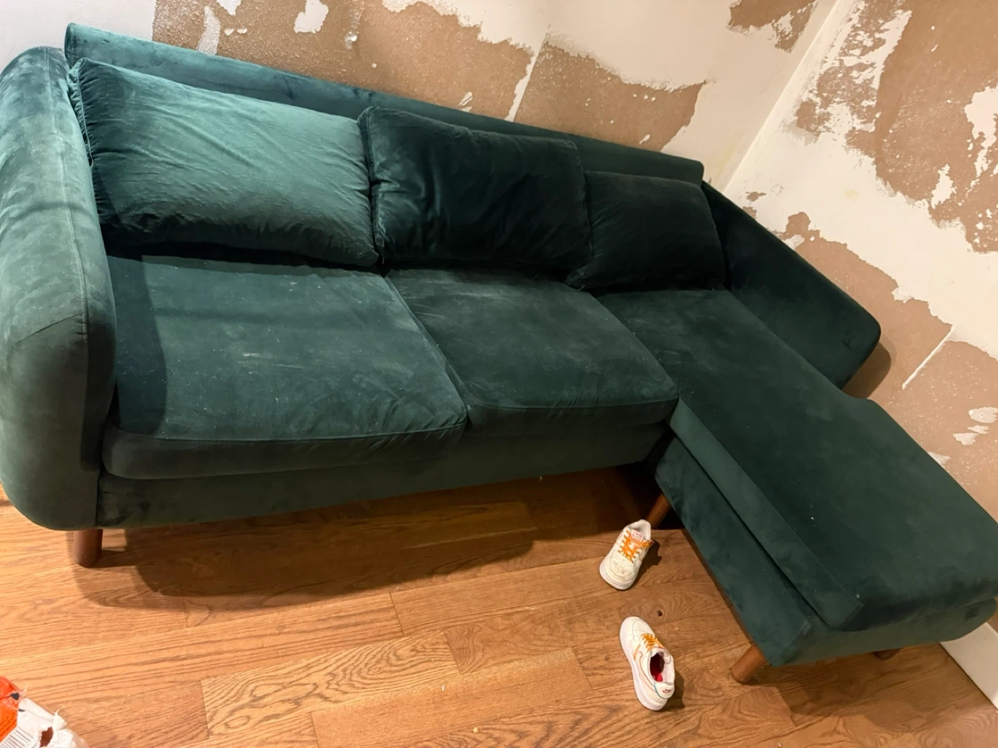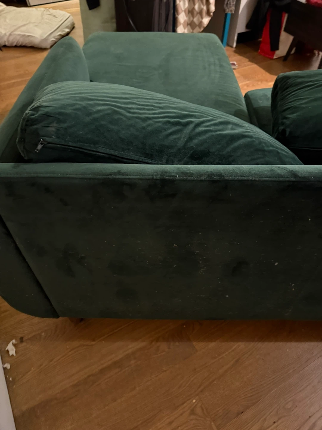 Selling a WASHABLE (all cushions covers zip off and are machine washable) green velvet sectional sofa with an ottoman. It's in good condition and perfect for a living room or den. The sectional provides seating for 3+ and the ottoman adds extra comfort and versatility. OBO Must pick up