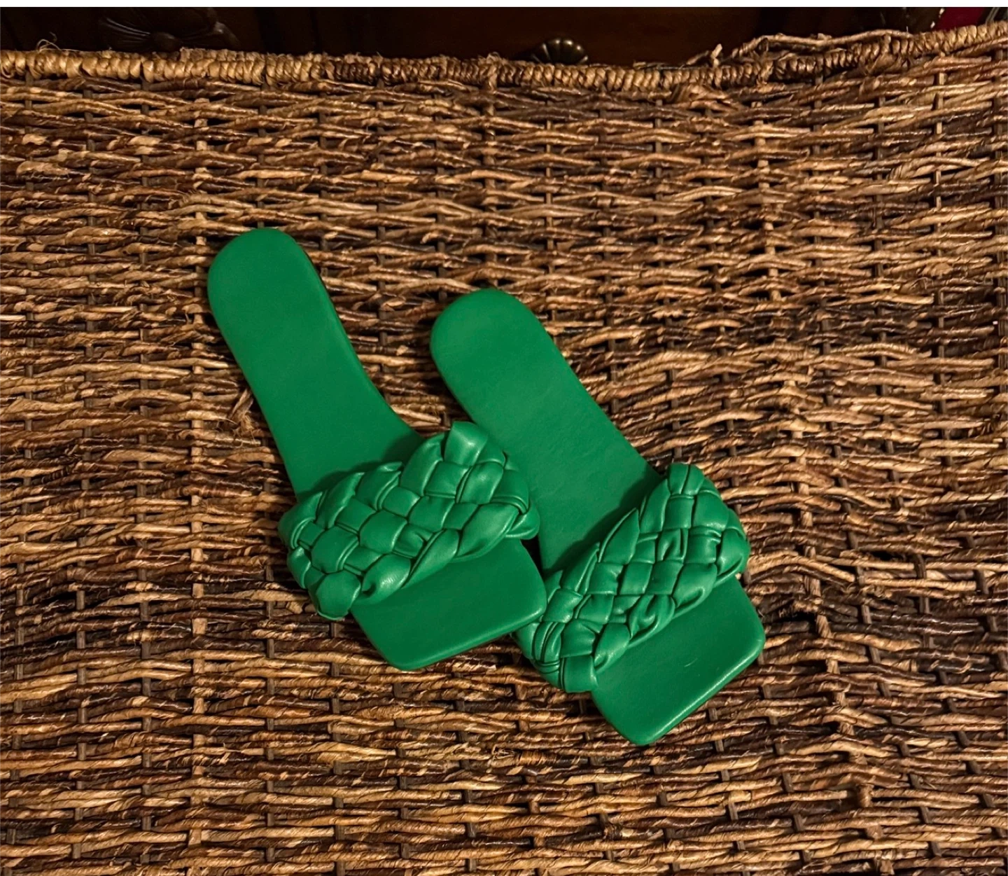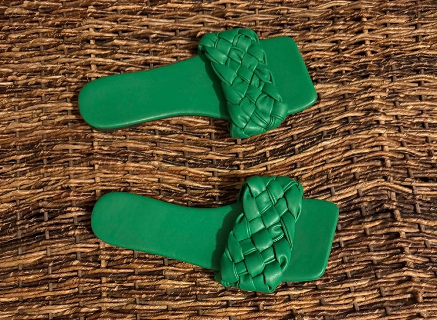 65These green woven slide sandals are perfect for adding a pop of color to your outfit! They're in great condition and ready for a new home