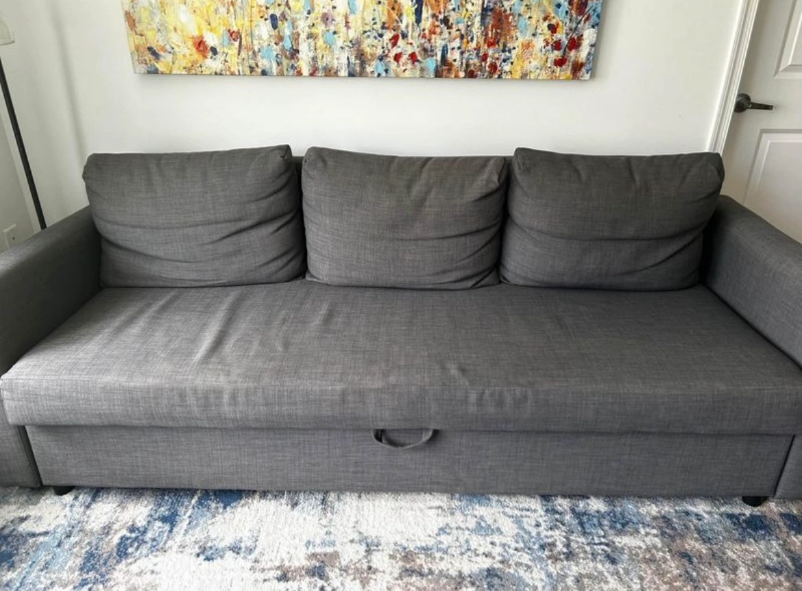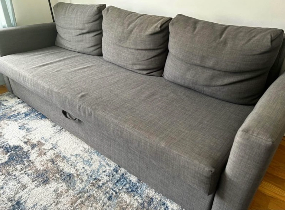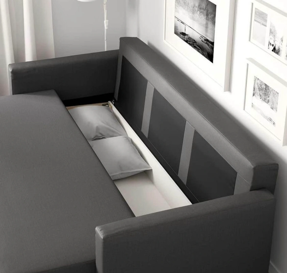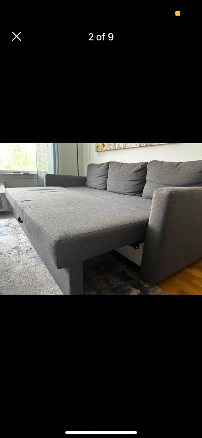 25Product details: Easily converts into a bed. Large practical storage space under the seat. Measurements: Width: 88 5/8 " Depth: 41 3/8 " Height: 32 5/8 " Seat depth: 24 " Seat height: 18 1/8 " Bed width: 56 3/4 " Bed length: 78 3/8 " *Must go before August 31st. Pick up only*