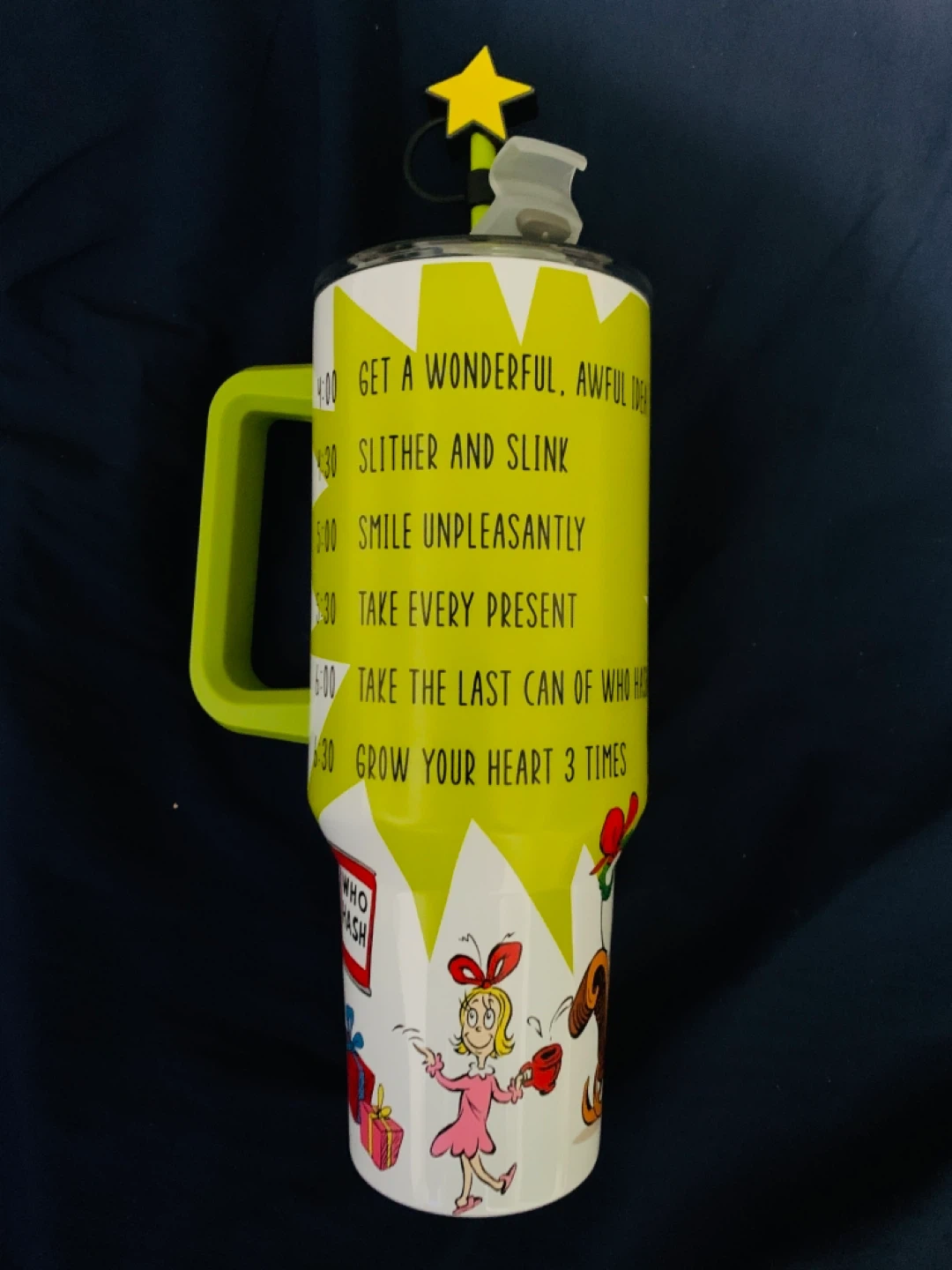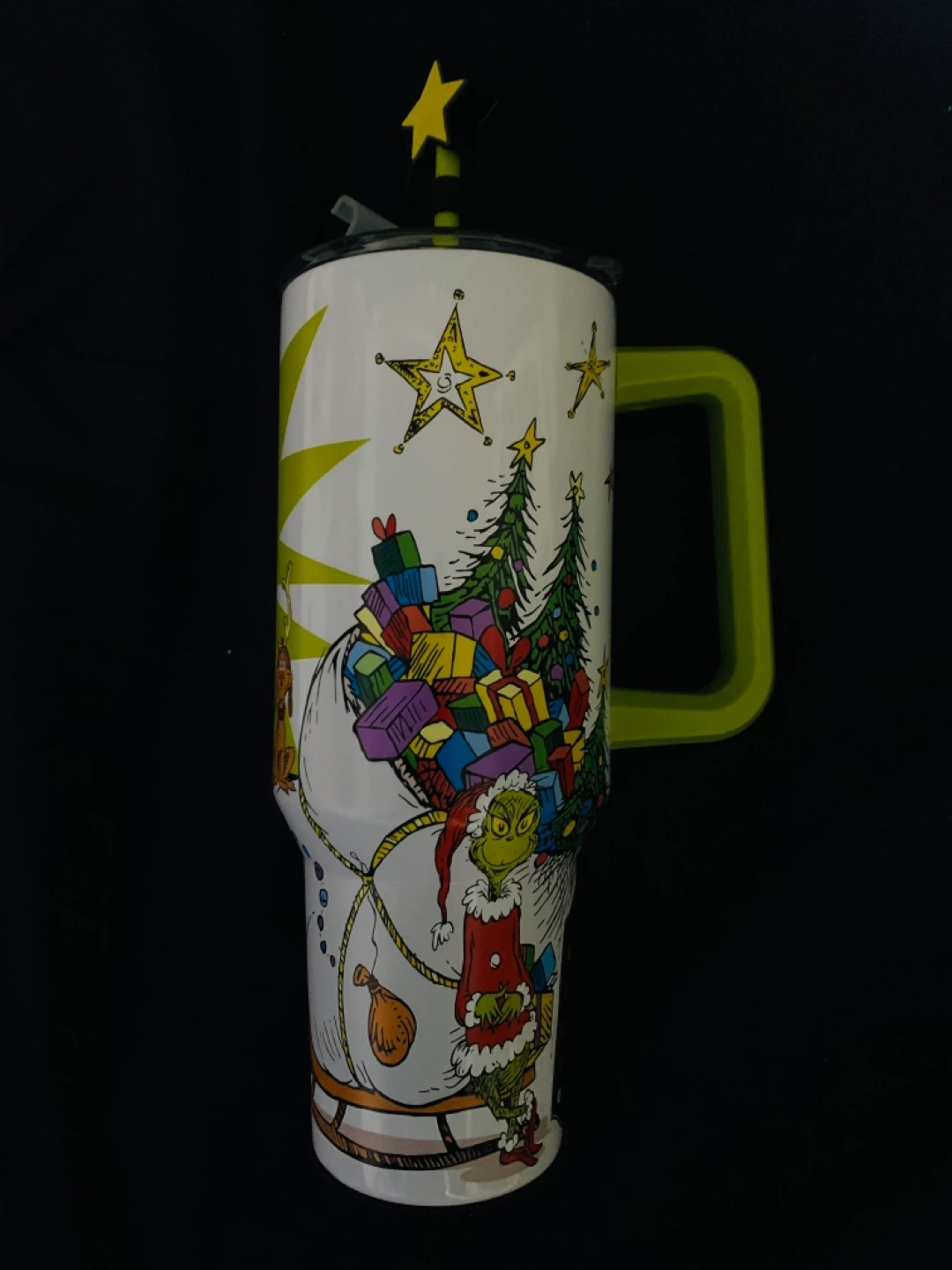 Show allGrinch Stainless Steel Tumbler 40 oz. Handle Straw Topper Lid