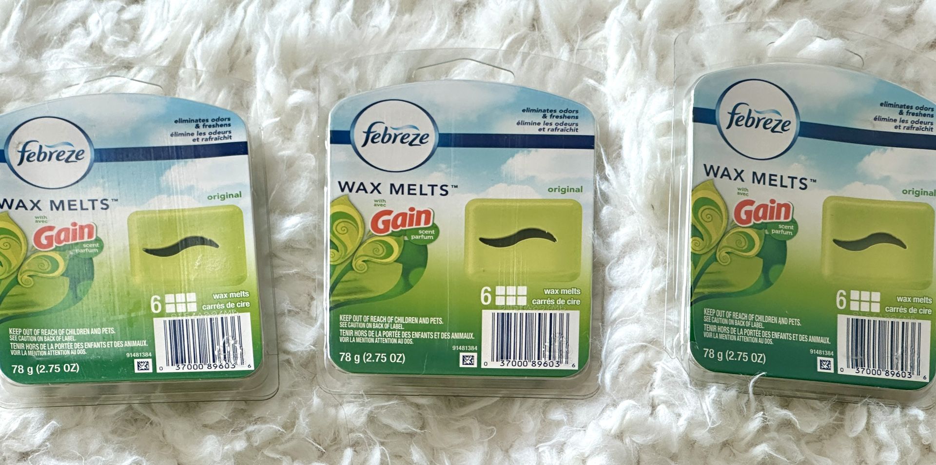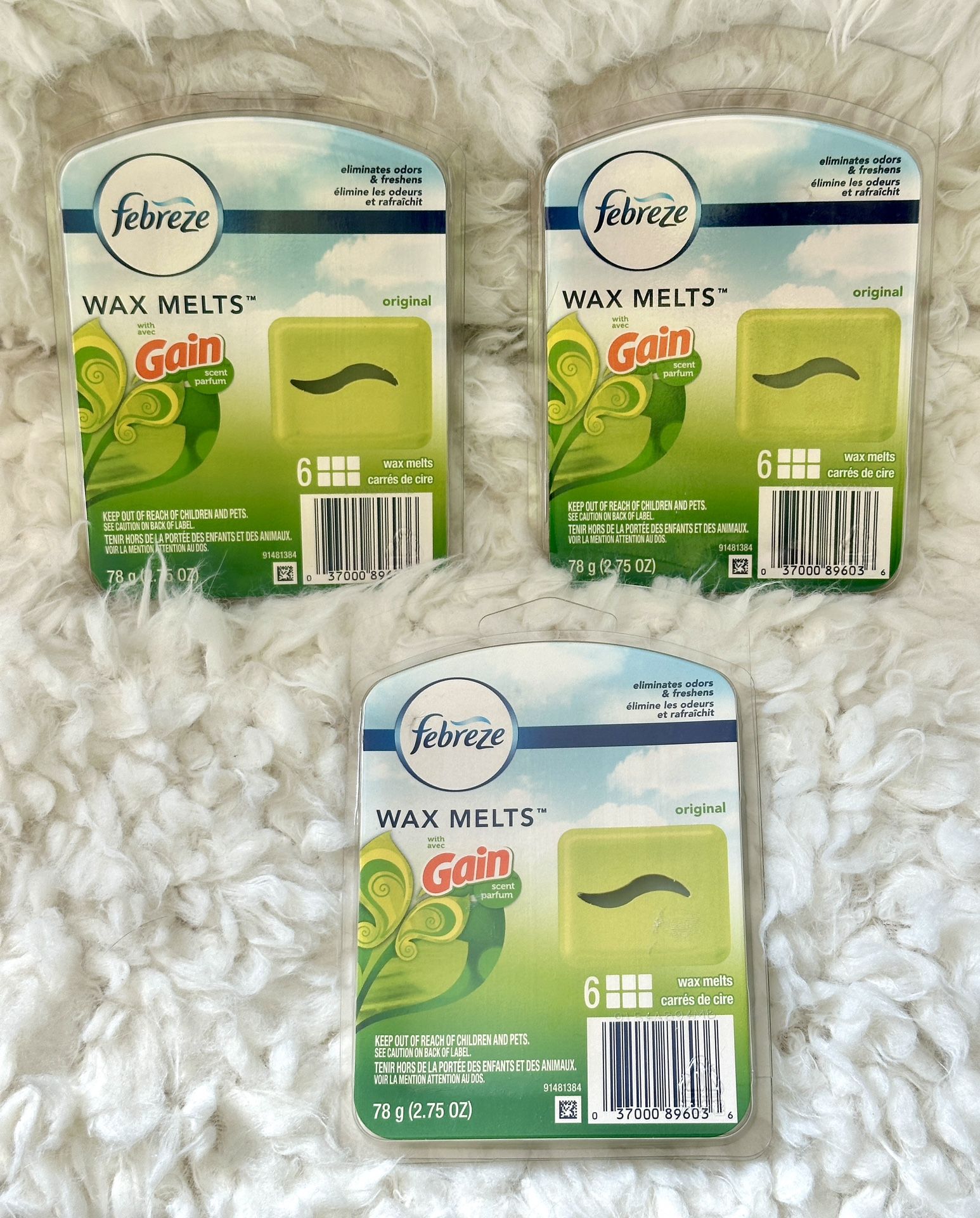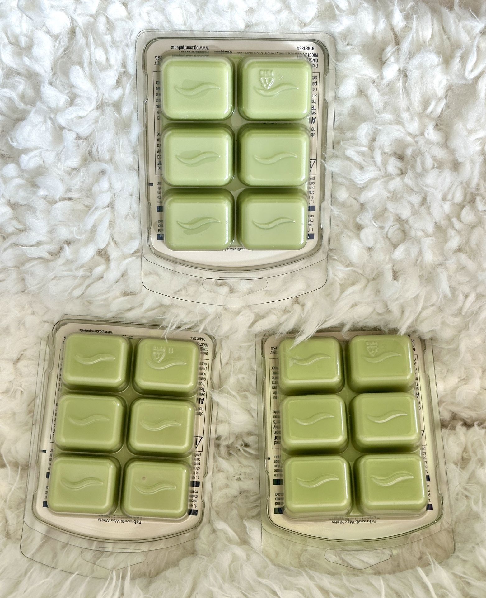 Febreze MELTS (formerly Febreze Wax Melts) fights odors and releases a light, fresh scent for hours when melted in a wax melt warmer. Use Febreze MELTS in entryways, bathrooms, kitchens, living rooms, or any room. Each pack includes six wax melt cubes. Compatible with any electric, light bulb, or tea light wax warmer. New in sealed packages! Each package contains 6 Cube Melts for a total of 18 Cubes for this 3 pack set. Cash only sale, Buyer must pick up from the Morton Grove area.