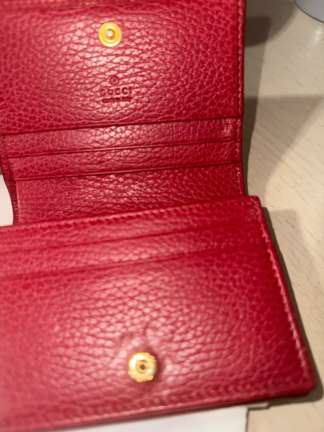 10Selling a beautiful GUCCI GG Marmont red -color small wallet! It's in great condition and comes with its original dust bag. This stylish wallet originally retailed for $490. It's a perfect accessory to keep your essentials organized with a touch of luxury