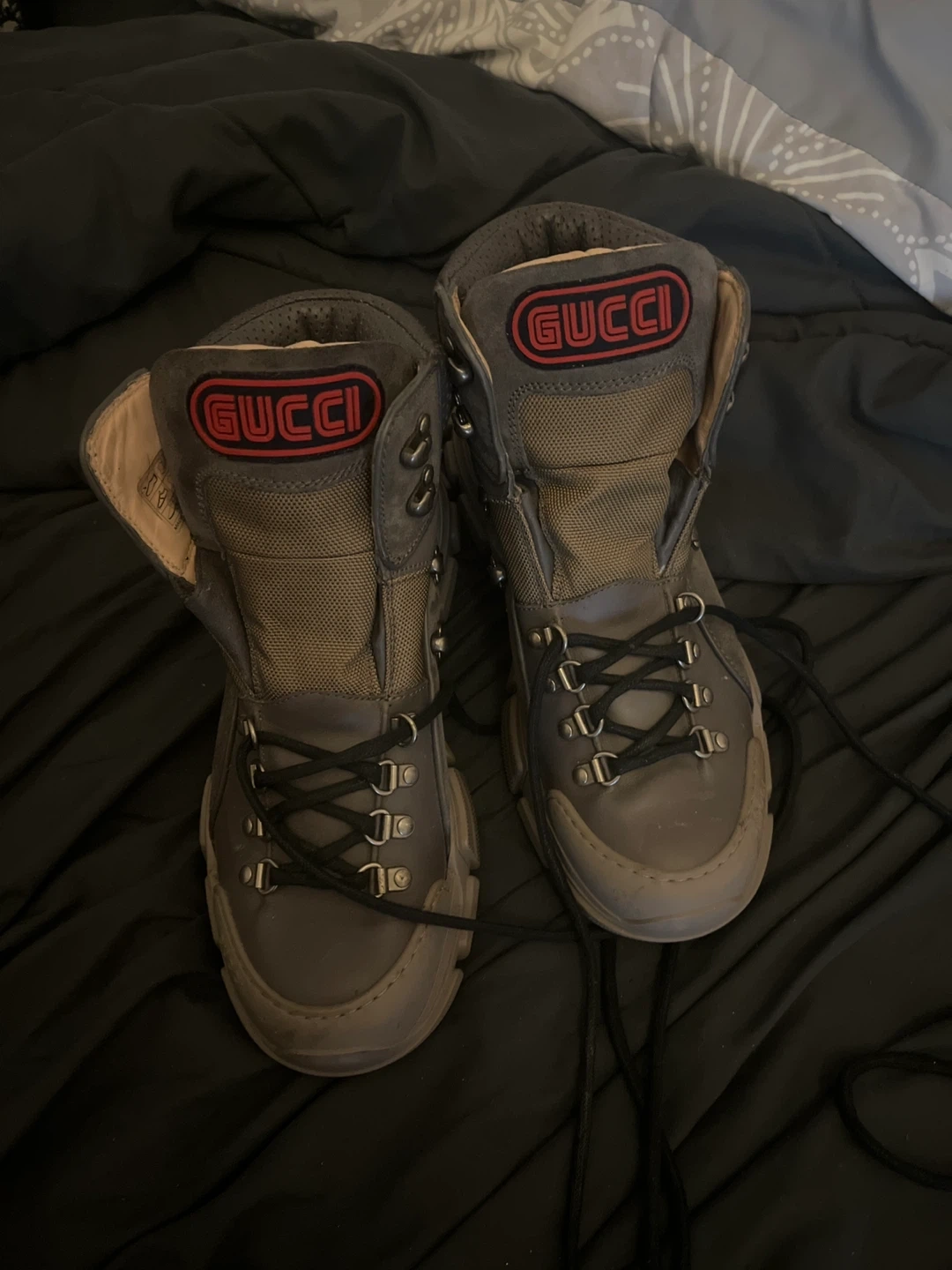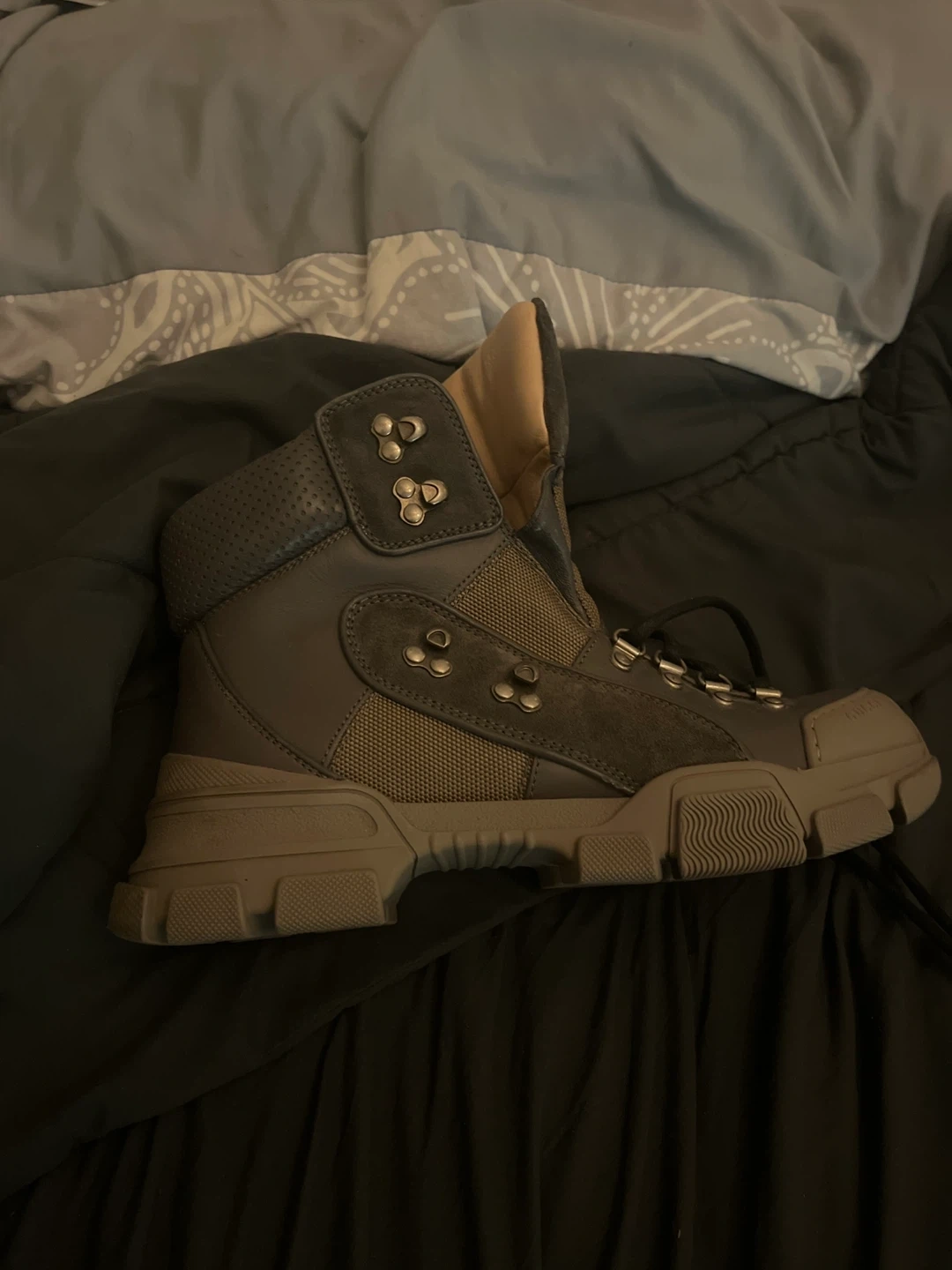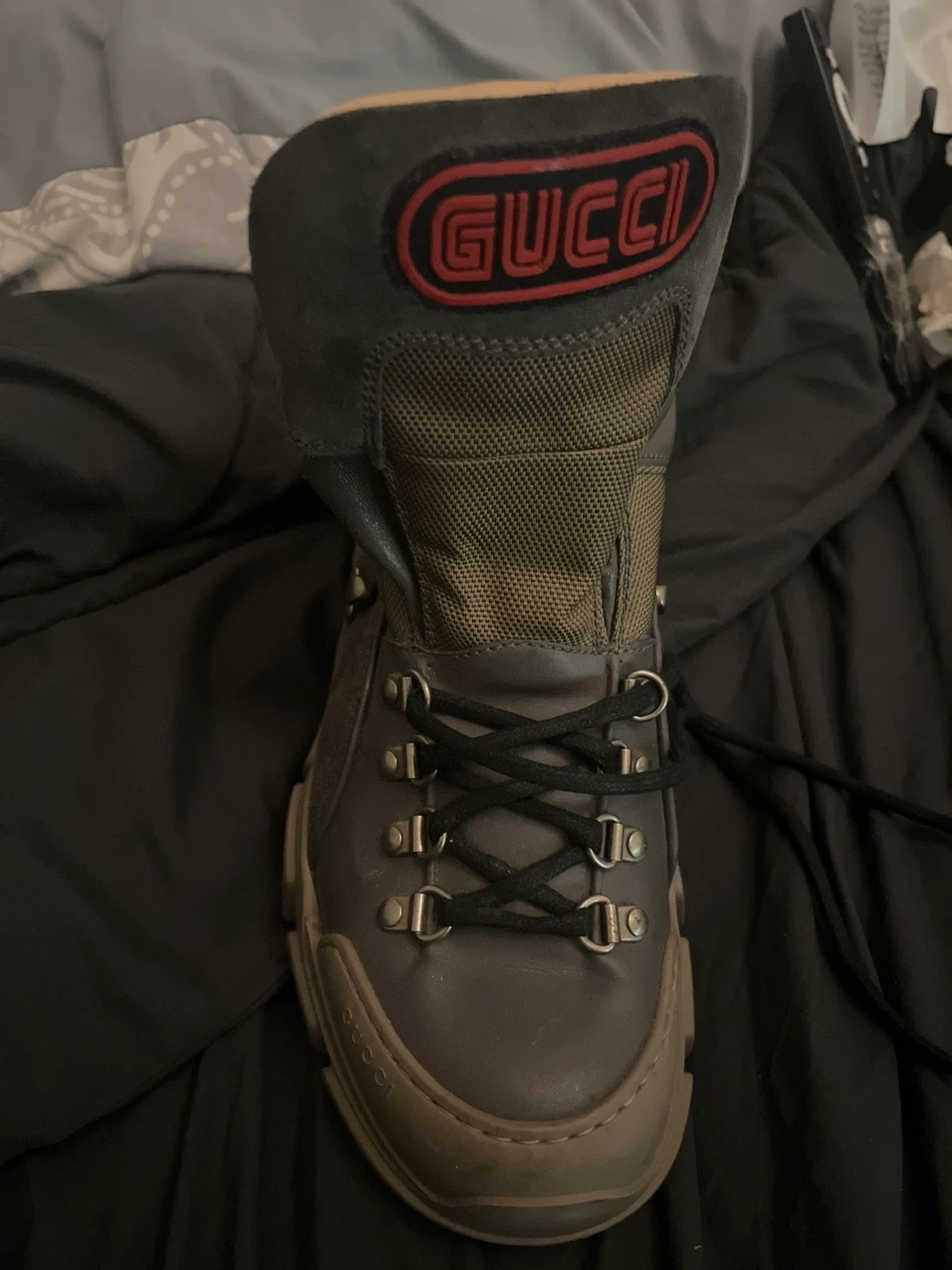 60Selling a pair of Gucci hiking boots. They're in good condition, with a stylish design. The size is marked Great for adding a touch of luxury to your outdoor adventures!