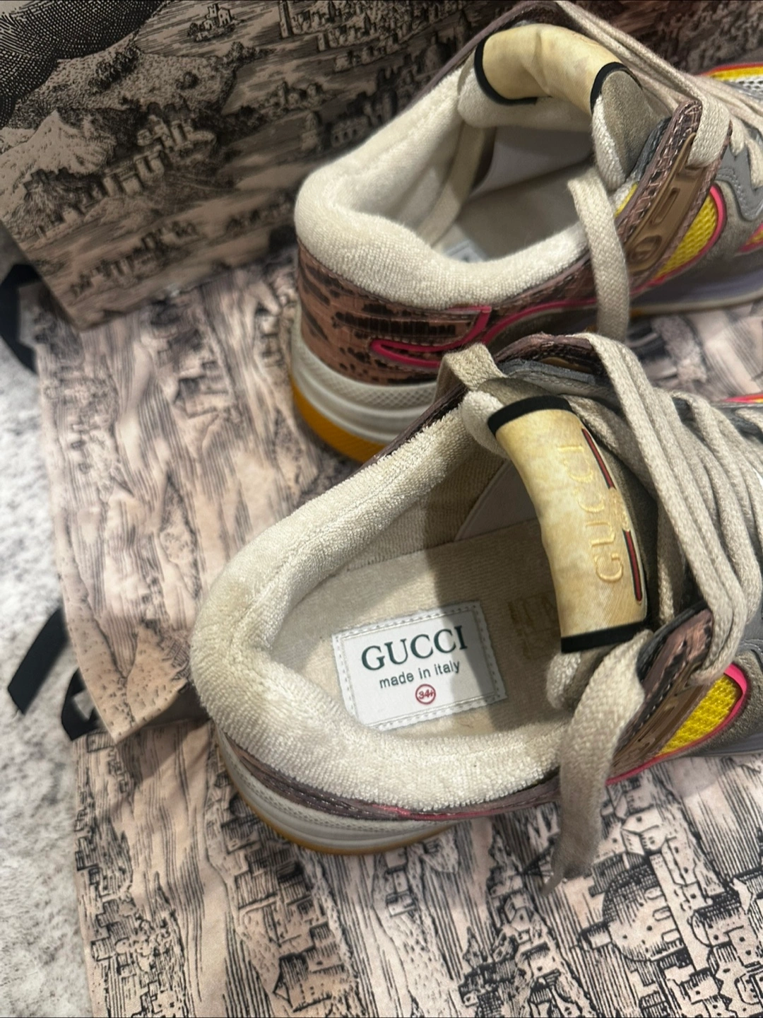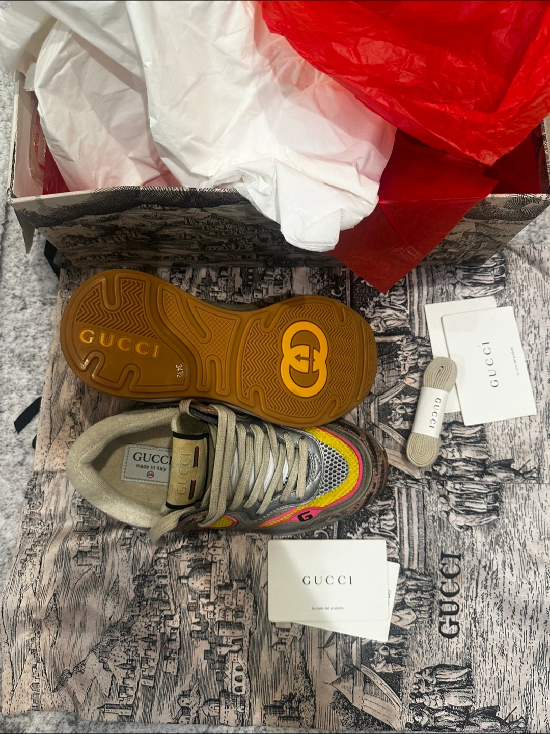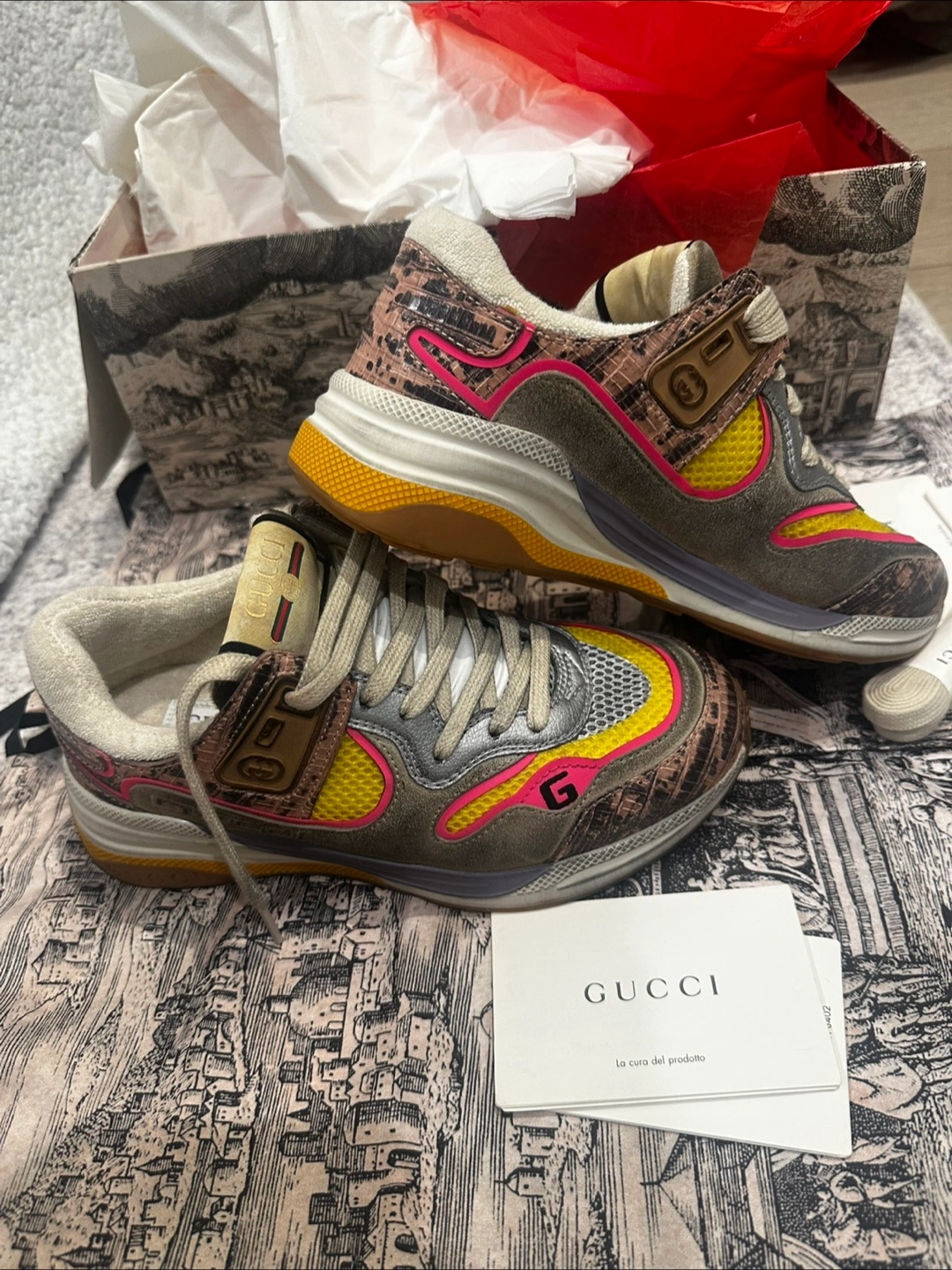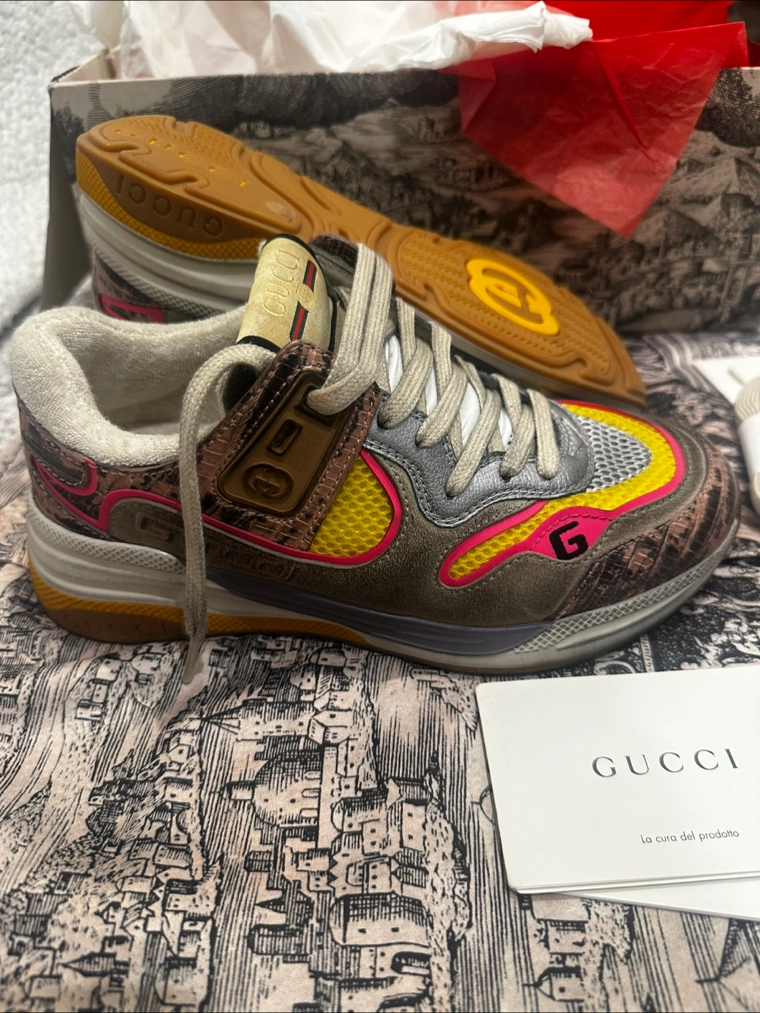 10Selling a pair of Gucci Screener sneakers, size 34.5They come with the original box and an extra pair of laces. These sneakers have a distinctive design and are made in Italy.