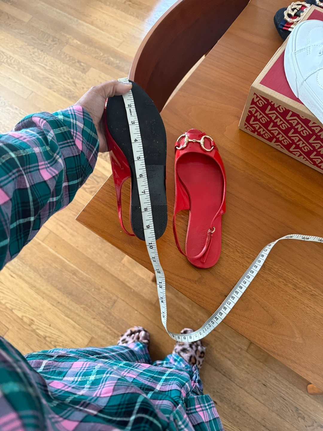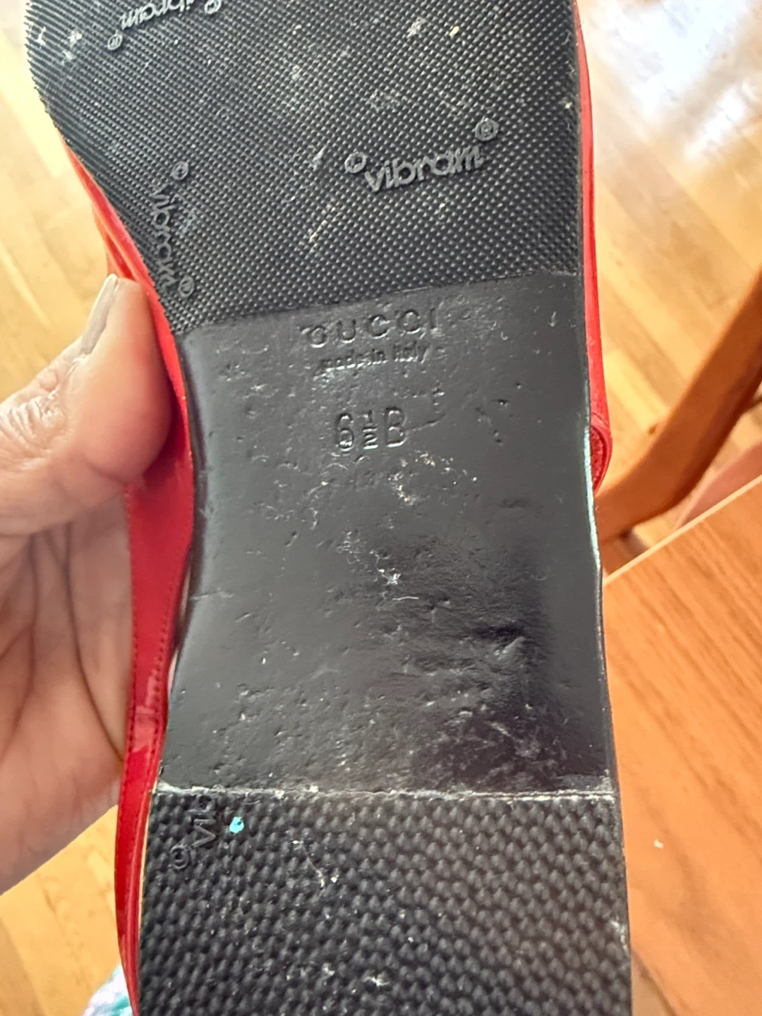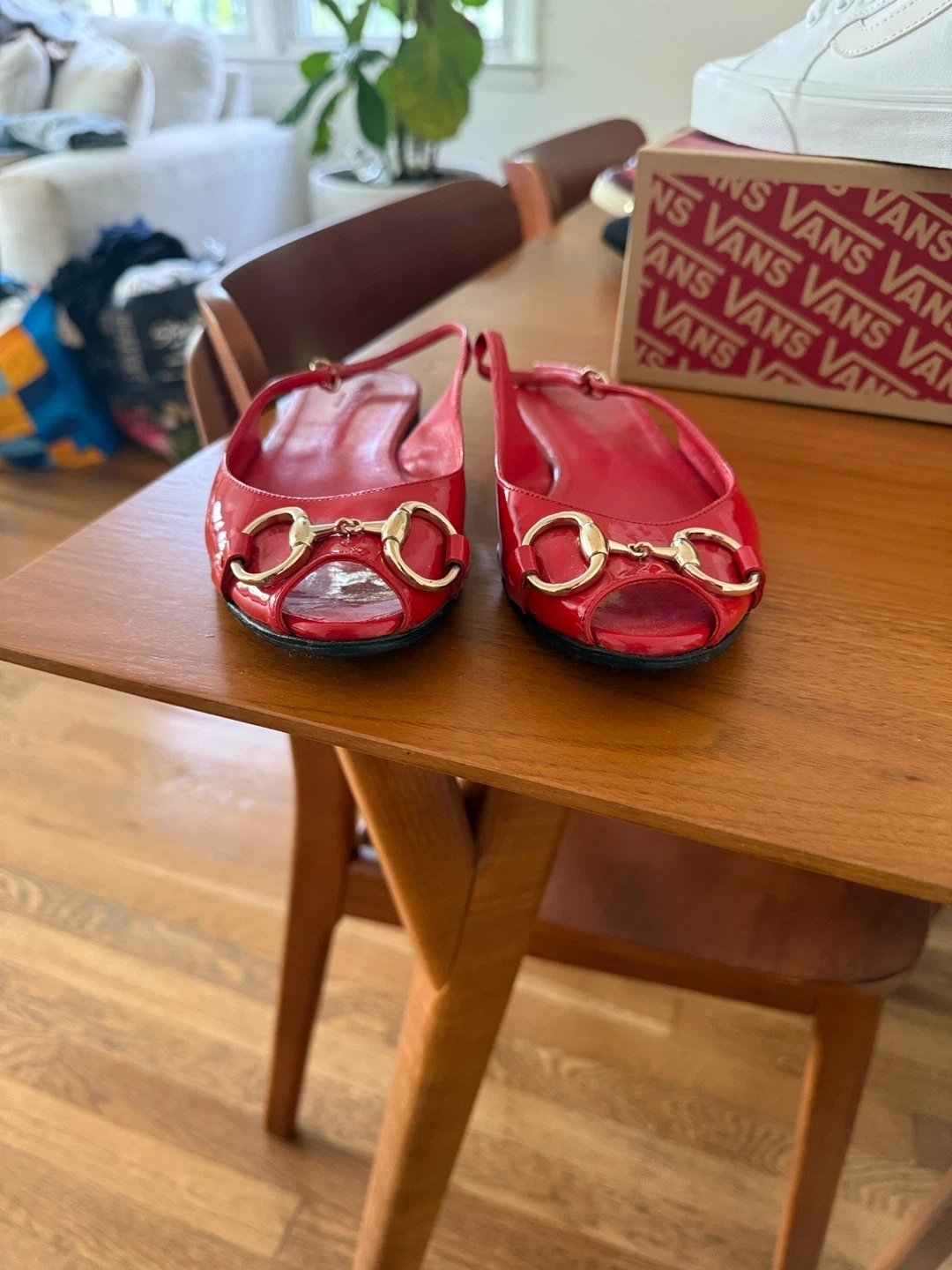 65These are a pair of red Gucci slingback sandals. They are in good condition and ready for a new home! Have been resoled.