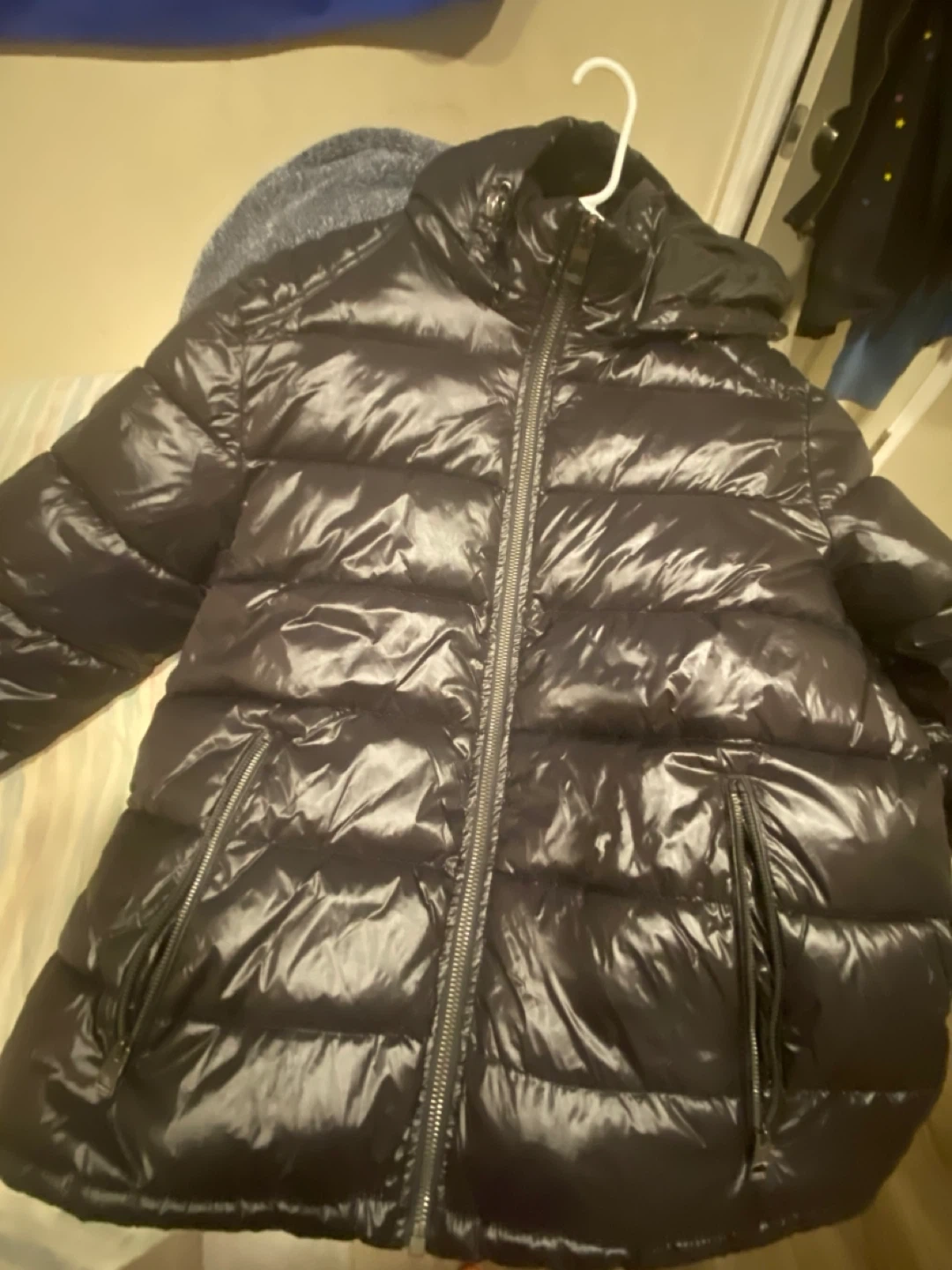 Selling a Guess black puffer jacket in size XL. It's in great condition and perfect for the colder weather. The material is shiny and the jacket is very warm!
