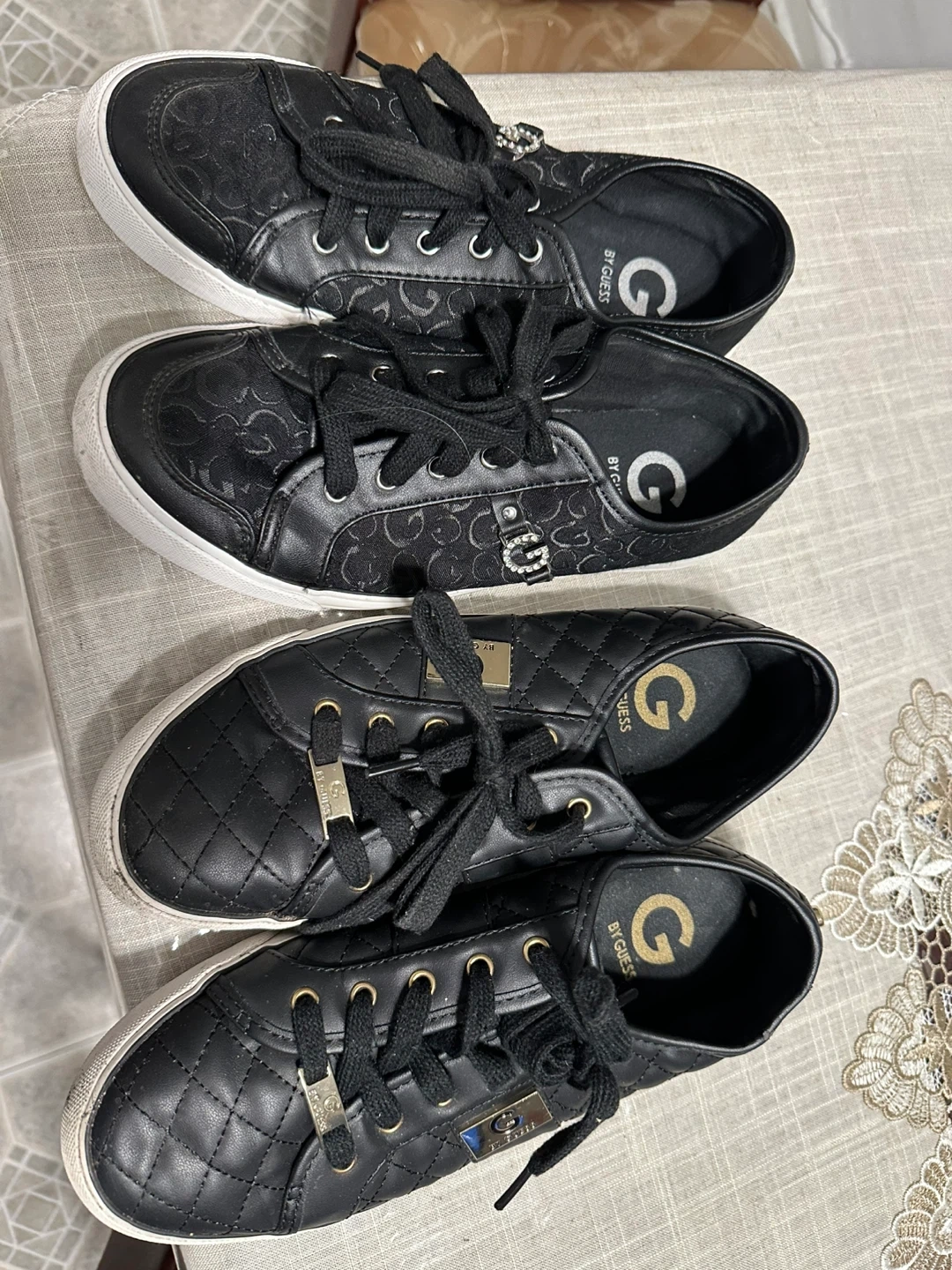 60Selling a pair of Guess sneakers in black. They have a stylish design and are in good condition. Perfect for casual wear!