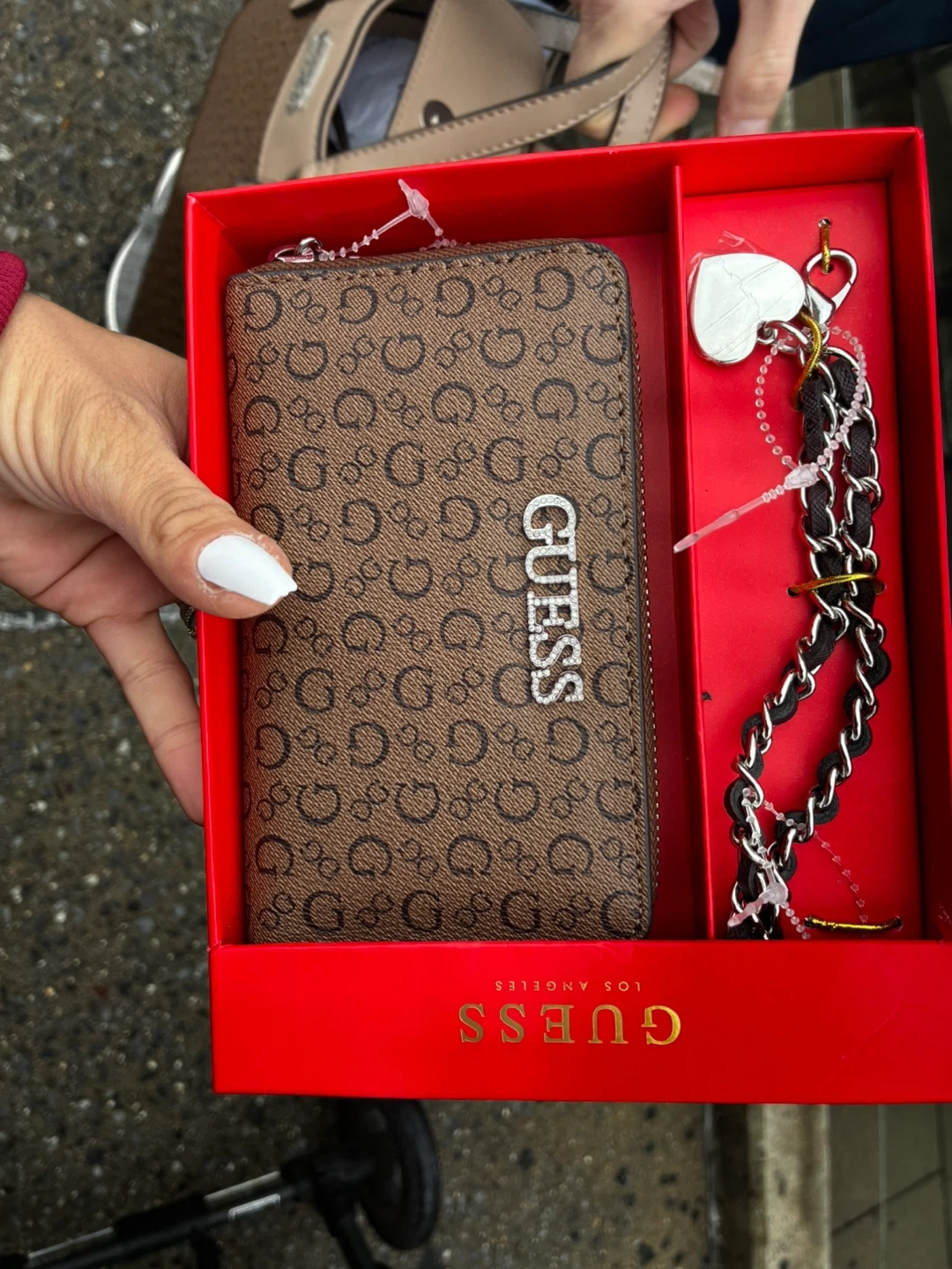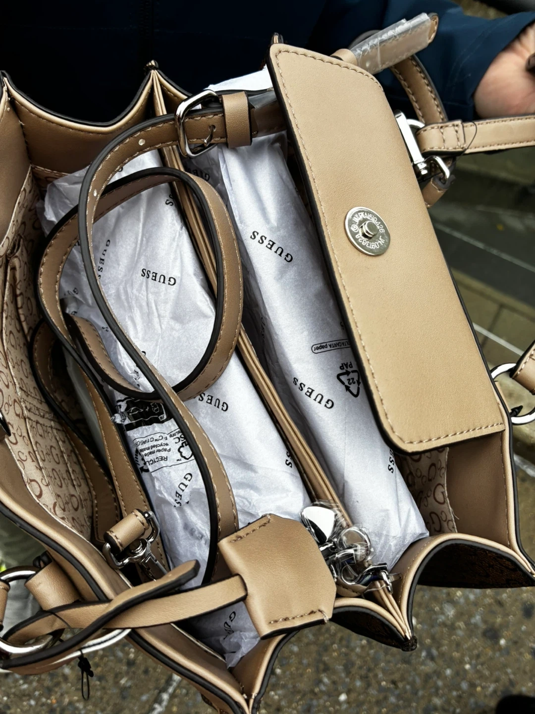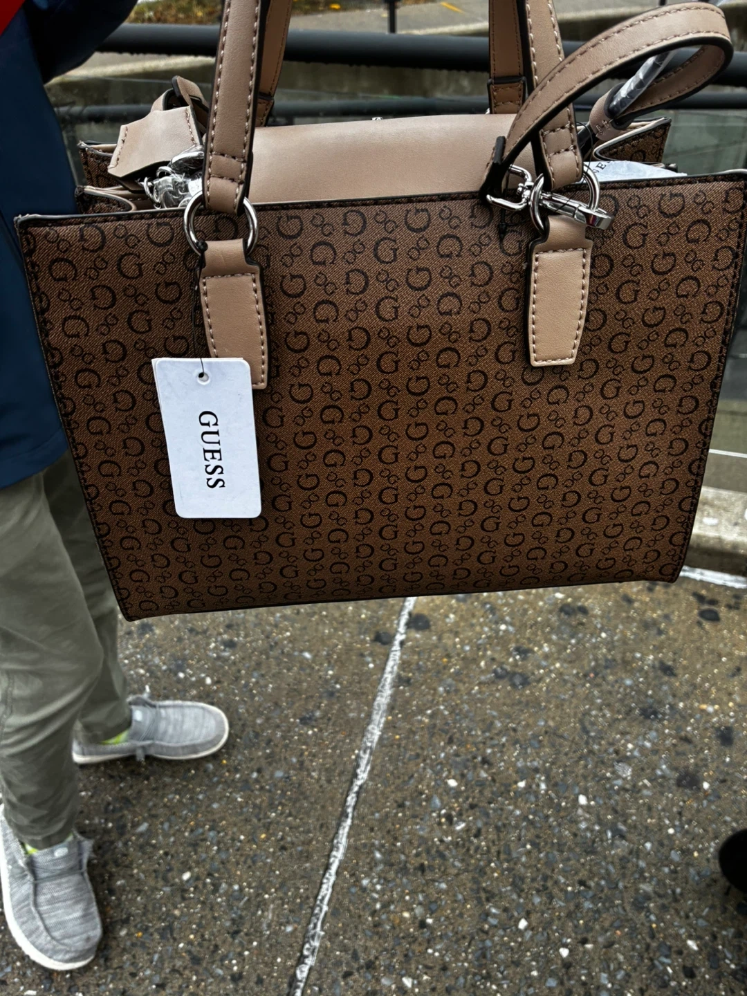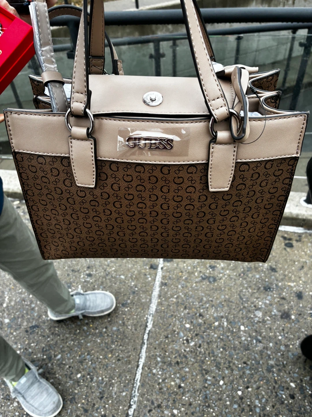 10Selling a like-new Guess tote bag in brown with a matching wallet! The bag is in excellent condition and comes with all original packaging and accessories. Perfect for everyday use or as a stylish addition to your collection! It has a beautiful design and is very spacious.