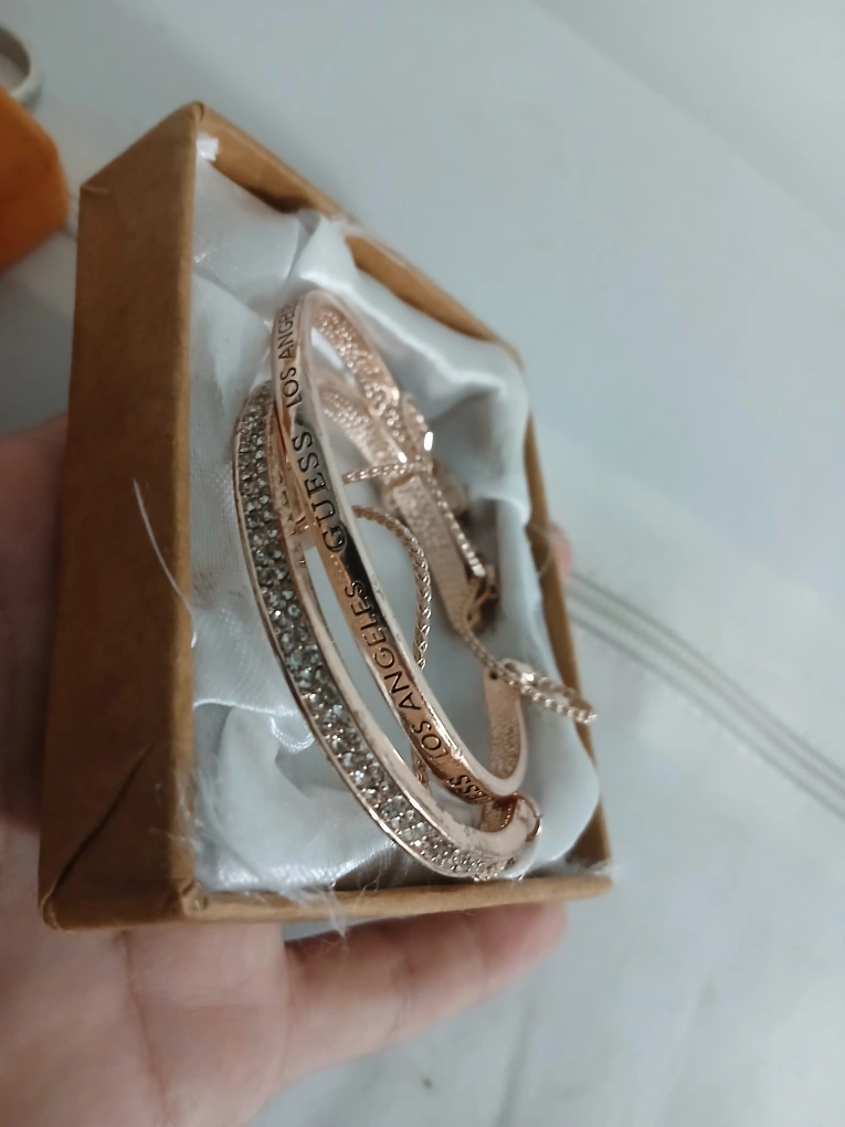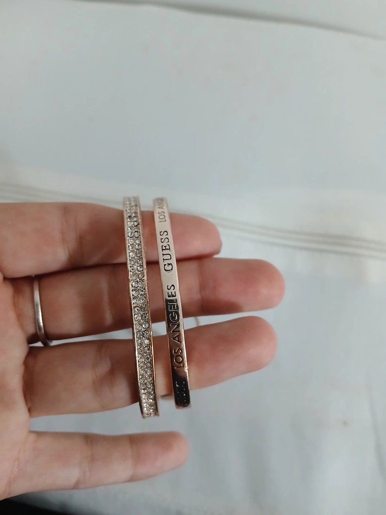 81I am selling a set of matching bracelets. They appear to have a rose gold finish and embellished with clear stones. Such a beautiful set to complete a simple outfit and put you at ease.