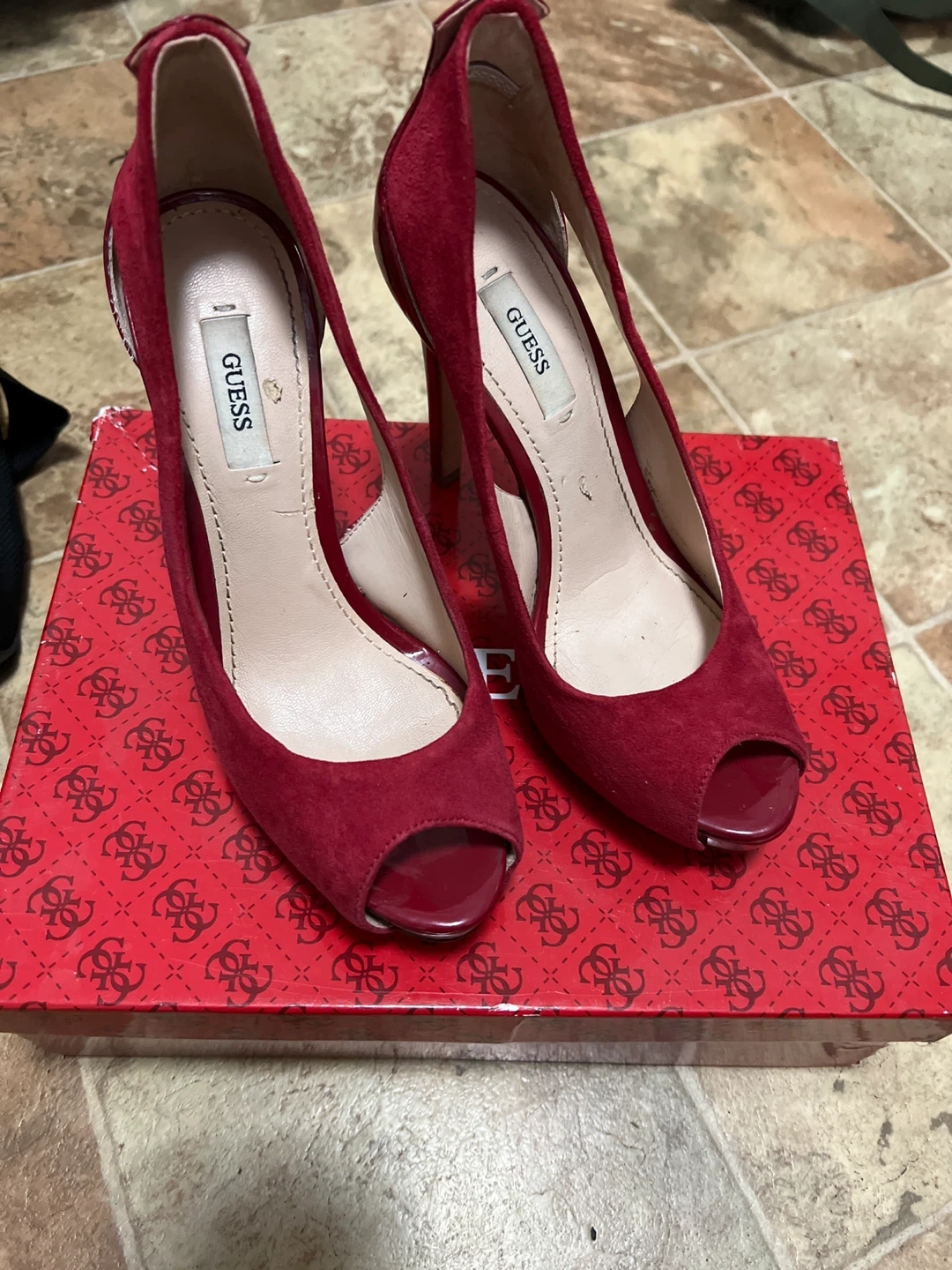 10Selling a pair of Guess heels in a lovely red suede! These come with the original box. They're perfect for adding a pop of color to any outfit