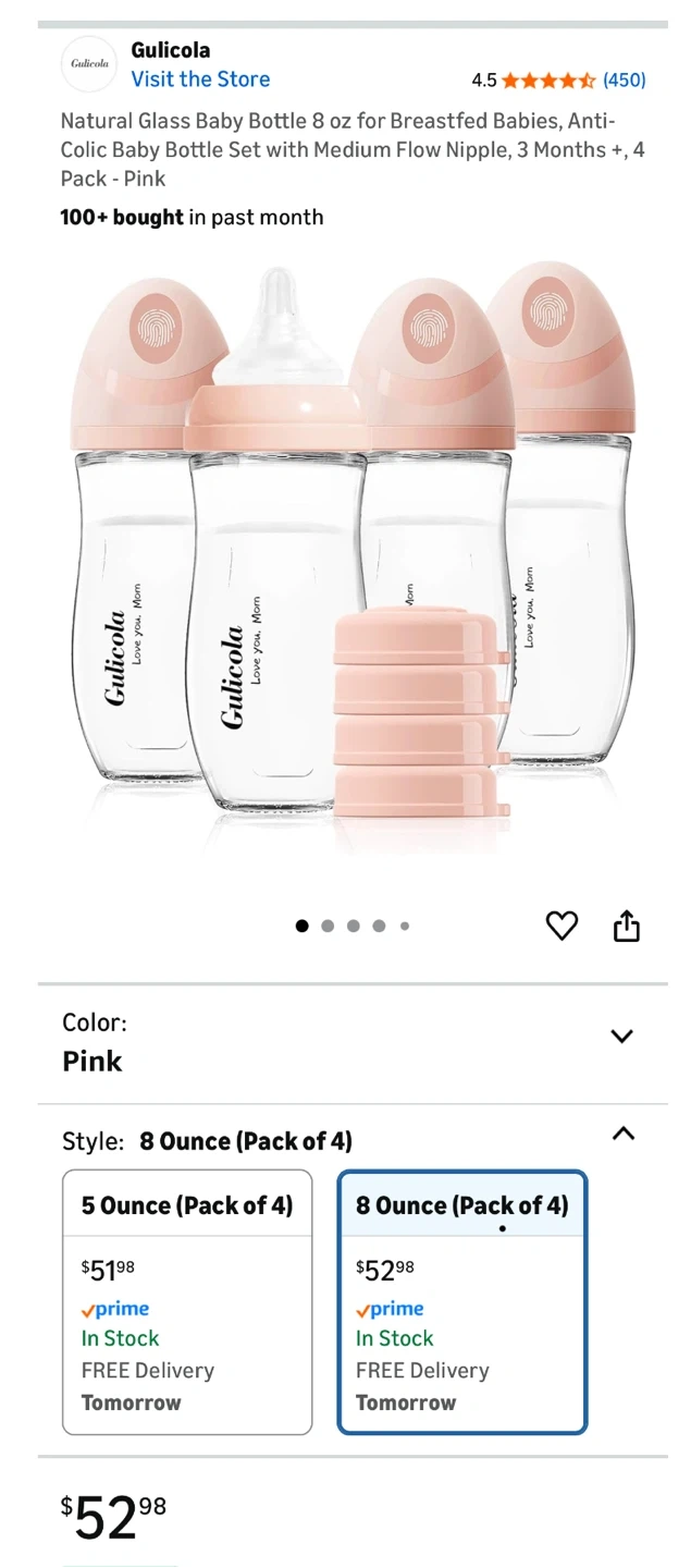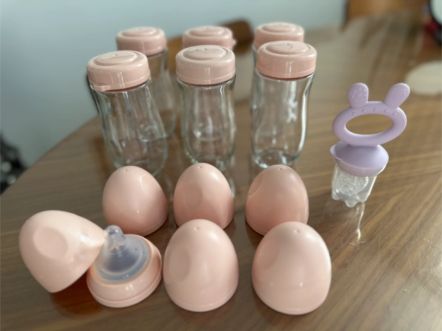 Selling a new-like set of 6 Gulicola glass baby bottles! The Amazon price per 4 bottles is $53, 6 bottles are $79. They each hold 8 ounces and have a natural glass design. Perfect for breastfed babies with an anti-colic design and medium flow nipple. Comes with a baby food feeder too!