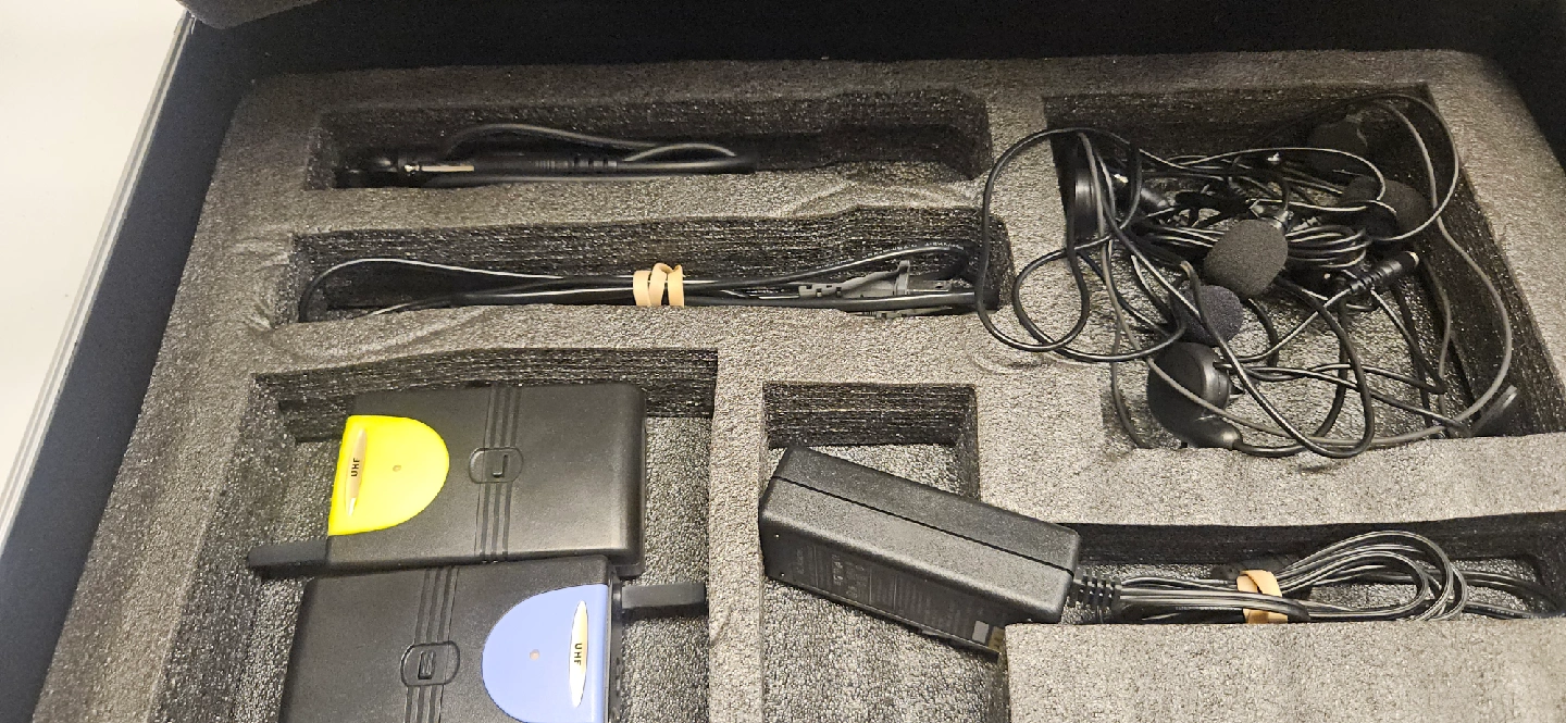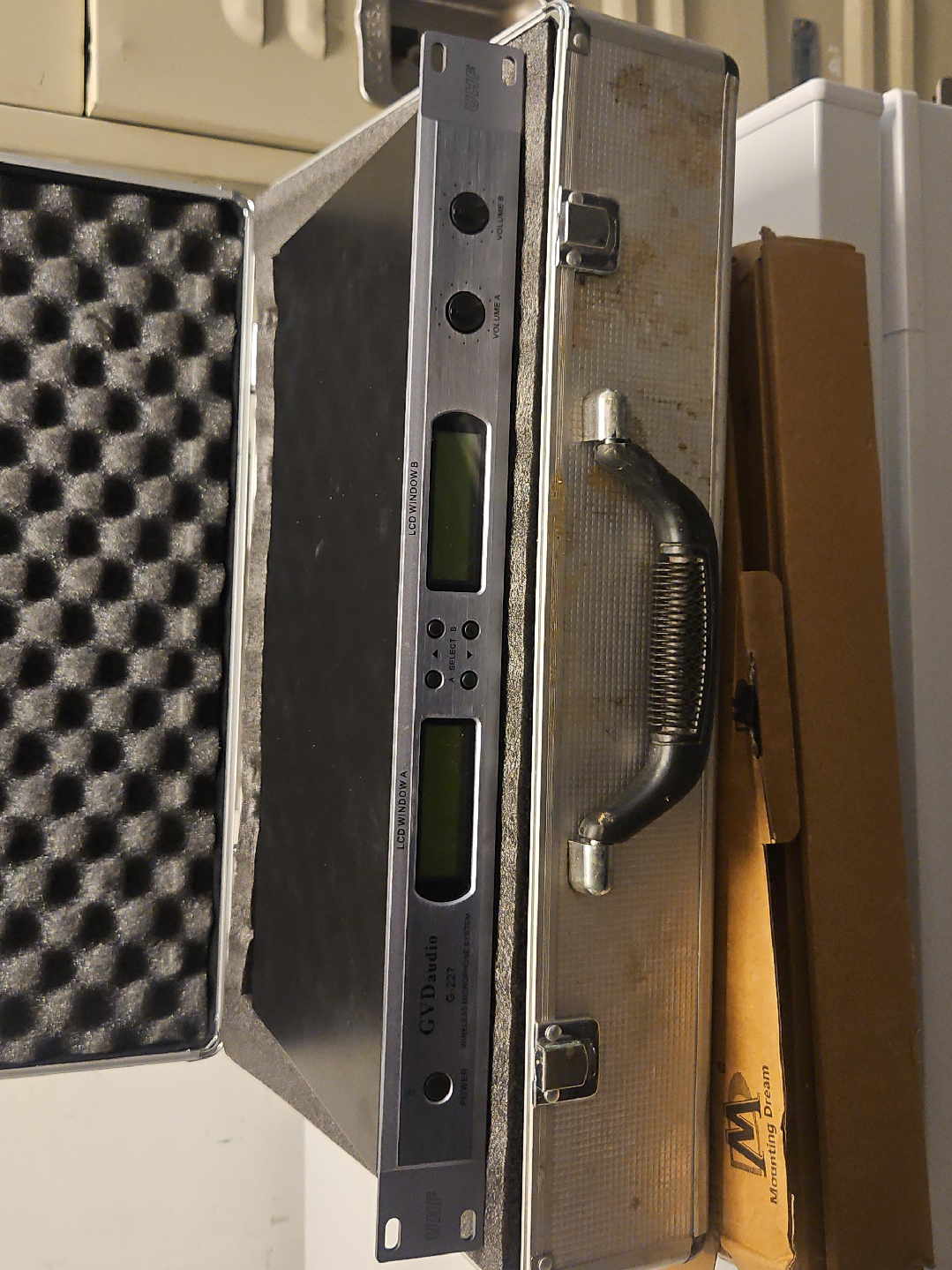 60Selling a GV Daudio G227 wireless microphone system! It includes the receiver, microphones, and power adapter, all neatly stored in its original case