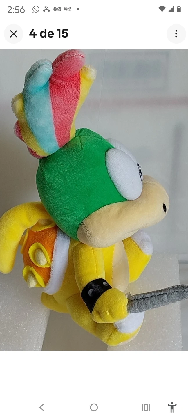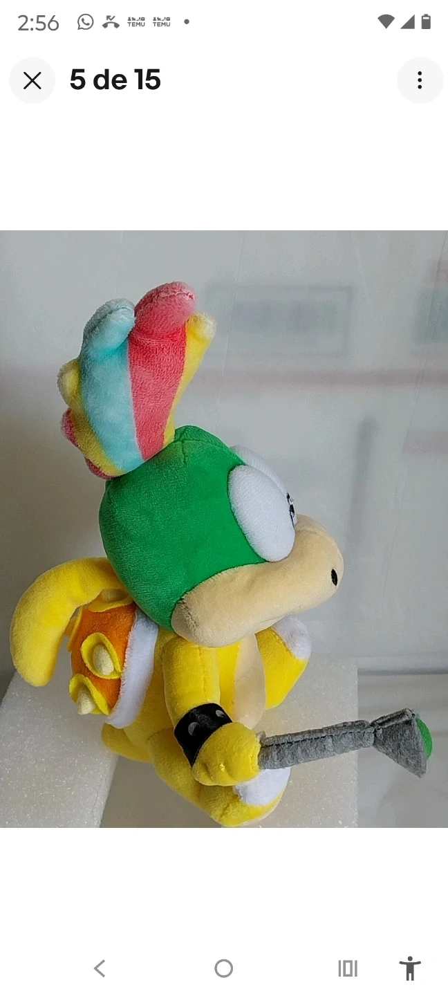 This is a plush toy of Larry Koopa from the Super Mario series. It's yellow with a green shell and a rainbow-colored tuft of hair. It's holding a wand.