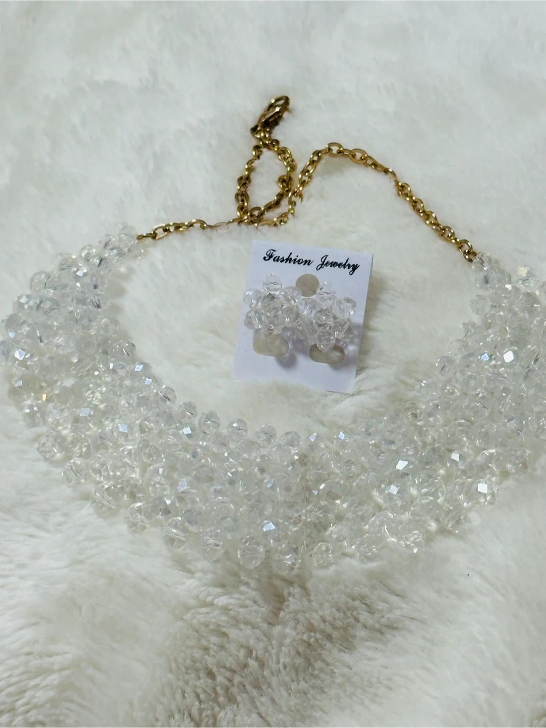 Handmade Clear Crystal Beaded Necklace and Earrings Set