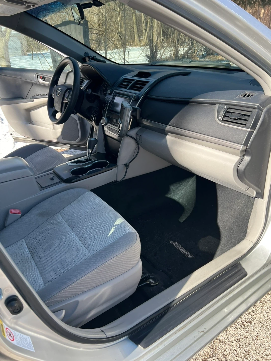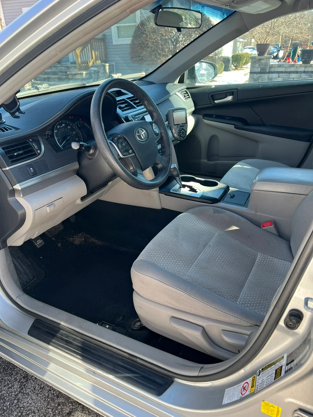 This is a 2014 Toyota Camry in silver. It's a sedan with a comfortable interior. It includes a Hertz NeverLost GPS device.