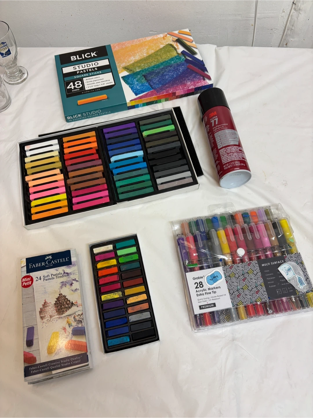 Selling a collection of art supplies including: ▪️ Blick Studio Pastels (48 assorted square sticks), basically new, used once. $15 ▪️ Faber-Castell Mini Petit 24 Soft Pastels, basically new. $10 ▪️ Grable 28 Acrylic Markers Extra Fine Tip, used. $5 or free with purchase from this post (sold) ▪️ 3M super 77 multipurpose Adhesive. $Free with purchase Or the rest of 3 items for $20 ☀️Pickup location is in LIC. I’m moving away, so I’m selling and giving away a lot of things. Check my listing for other items.