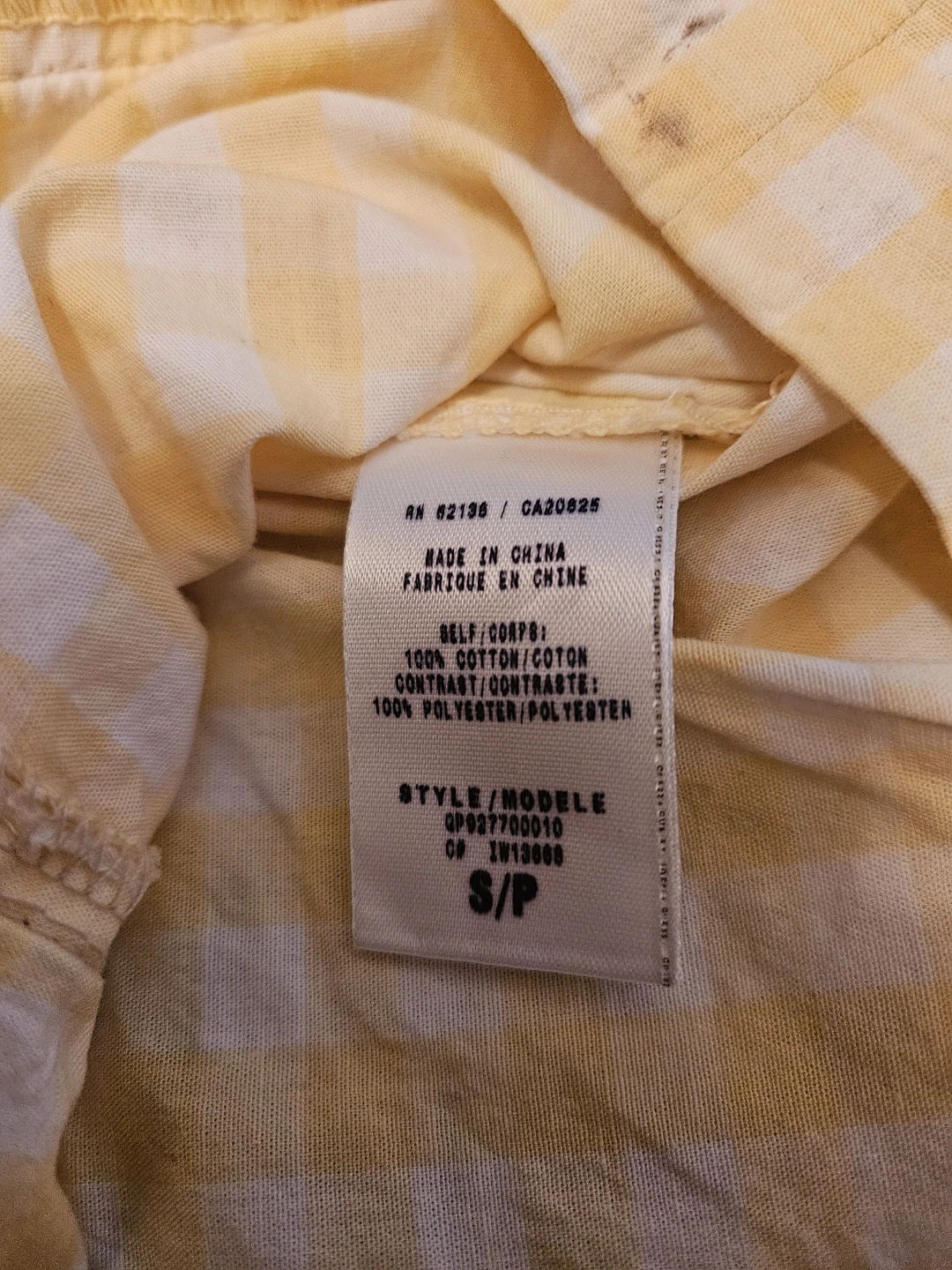 Selling a cute yellow and white gingham dress from Guess! It's a size S/P and made of 100% cotton with polyester contrast
