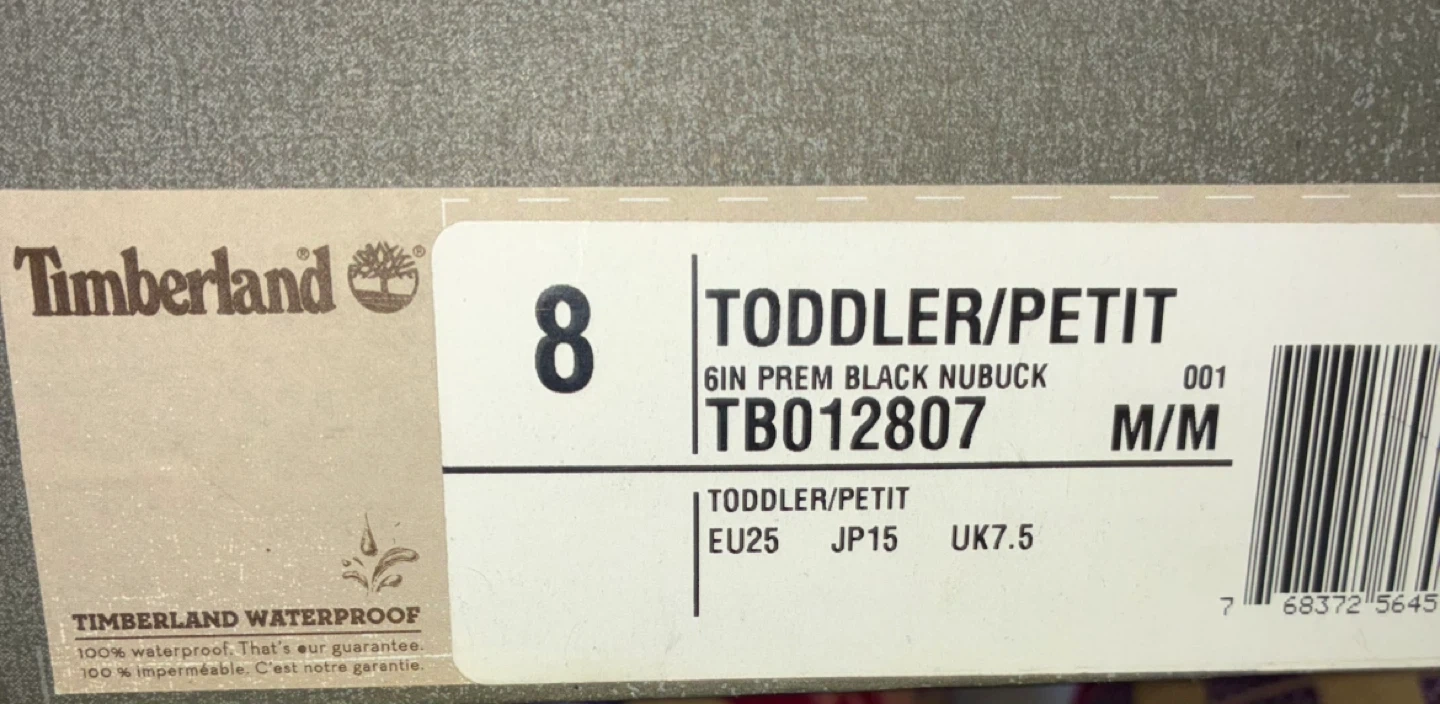Timberland Toddler Black Nubuck Boots Size 8
