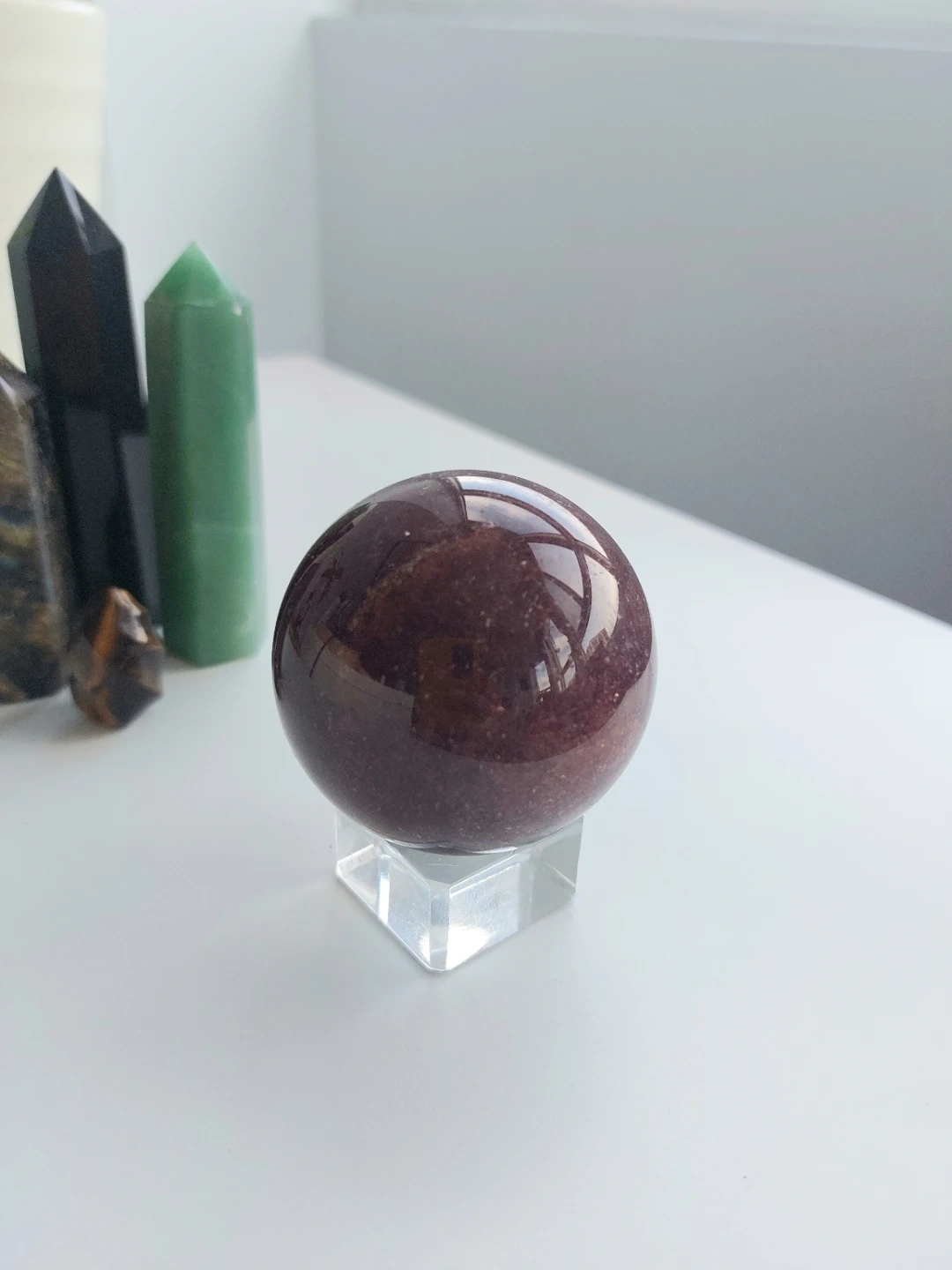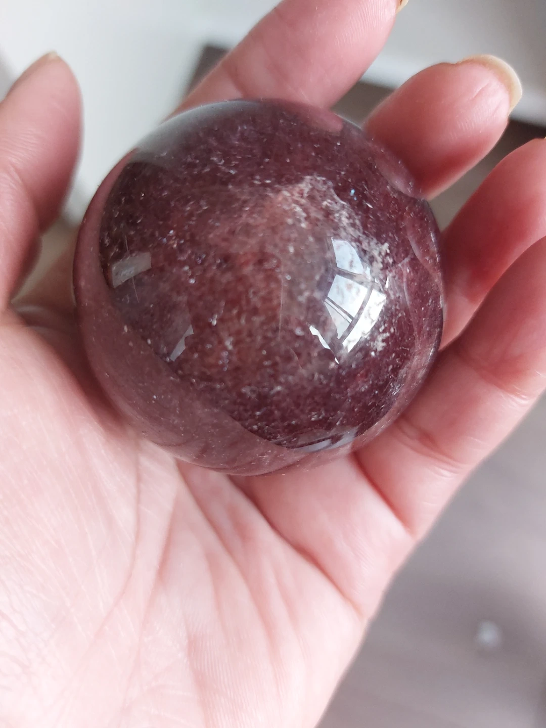 Beautiful strawberry quartz sphere with natural inclusions. It's smooth and polished, perfect for display or collection. A lovely decorative piece for any home! Comes with stand in last pic. More spheres listed and bundles welcome.