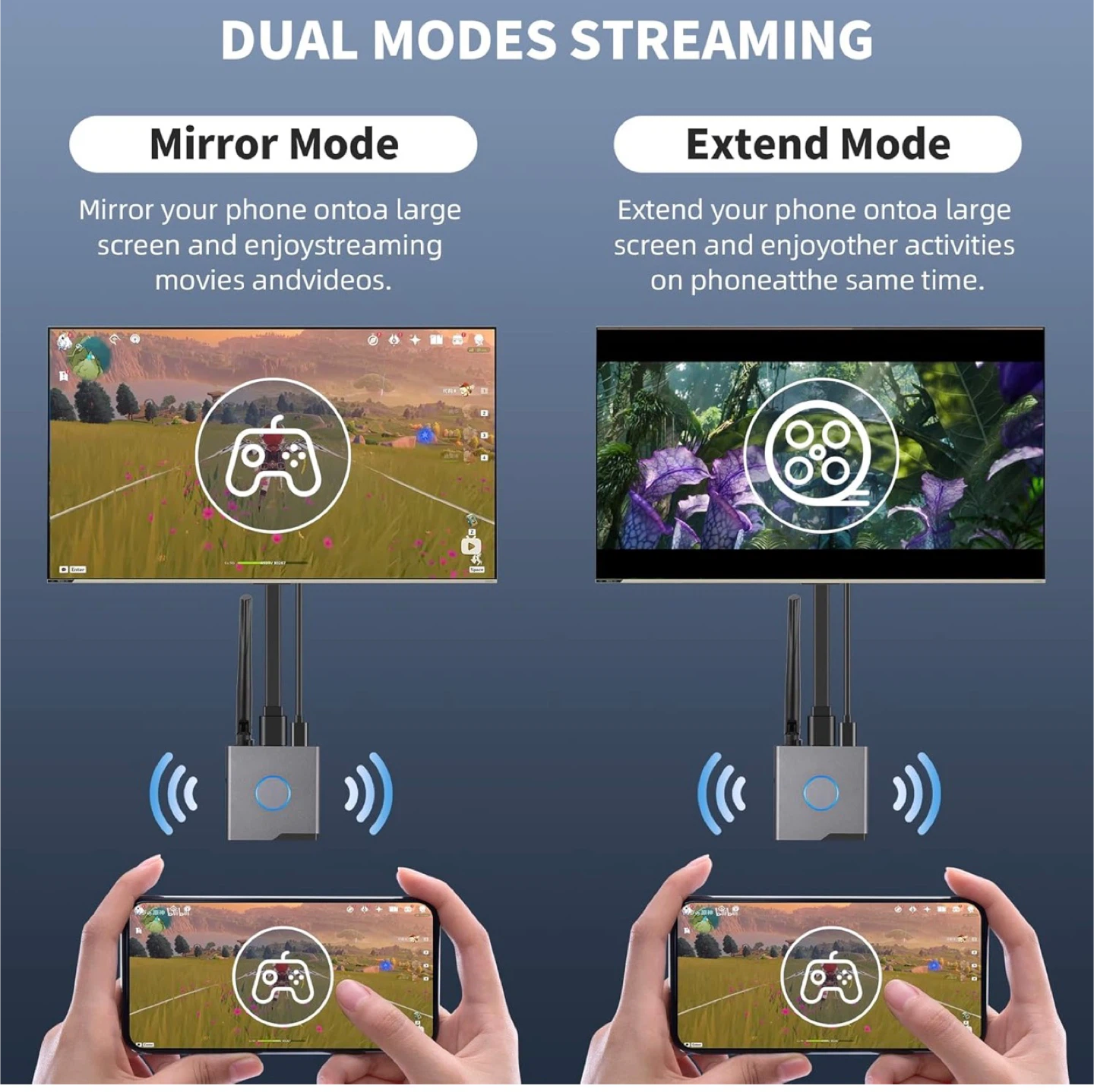 Wireless HDMI Display Dongle Adapter 4K, Wireless Receiver, Streaming Media Video/Audio/File HDMI Wireless Extender from Laptop, PC, Smartphone to HDTV Projector Monitor