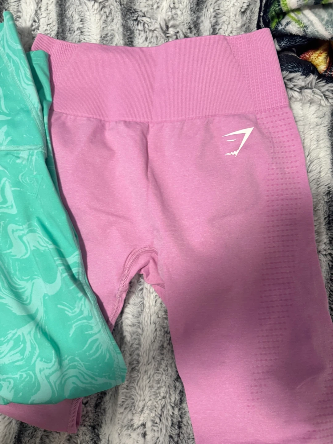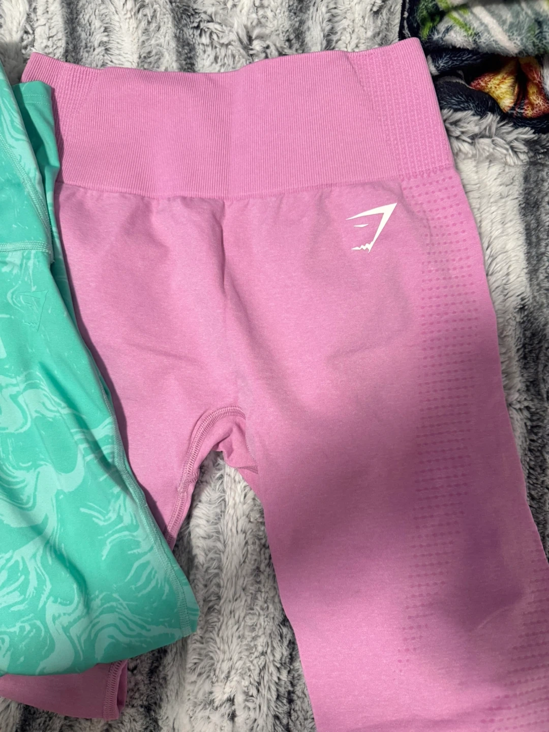 10I have a pair of Gymshark leggings in pink and a pair of Lululemon leggings in maroon. Both in great condition!