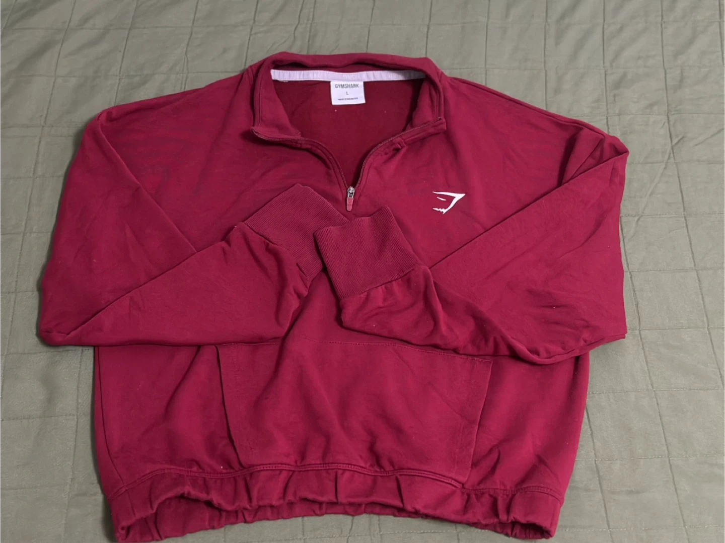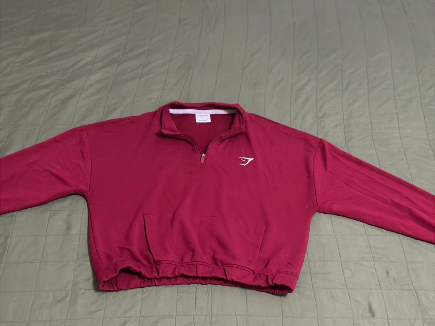 65Selling a Gymshark pullover in a lovely maroon color! It's a size large and in great condition. Perfect for workouts or just lounging around