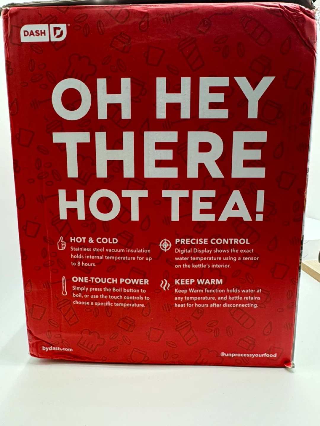 I'm selling a Dash insulated electric kettle! It's a 1.7-liter capacity kettle with 1500 watts. The digital display shows the exact water temperature using a sensor on the kettle's interior. It also has a keep warm function that holds water at any temperature, and the kettle retains heat for hours after disconnecting. It has dual wall vacuum insulation and keeps water hot for up to 8 hours. Includes precise temperature control from 104-212°F. The box is included!