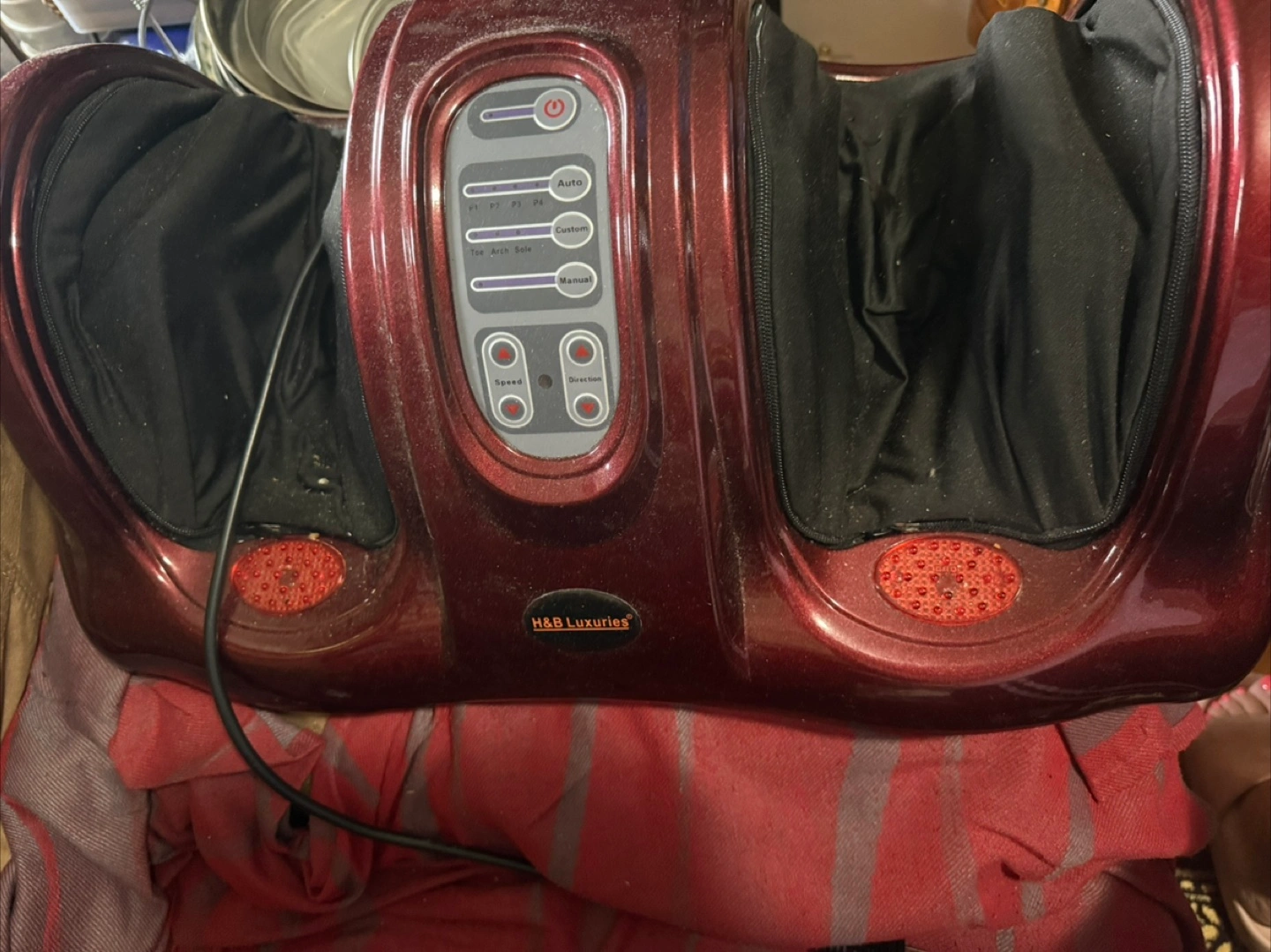Selling a foot massager by H&B Luxuries! It has settings for auto, custom, and manual modes. You can target toe, arch, or sole. It also has speed and direction controls