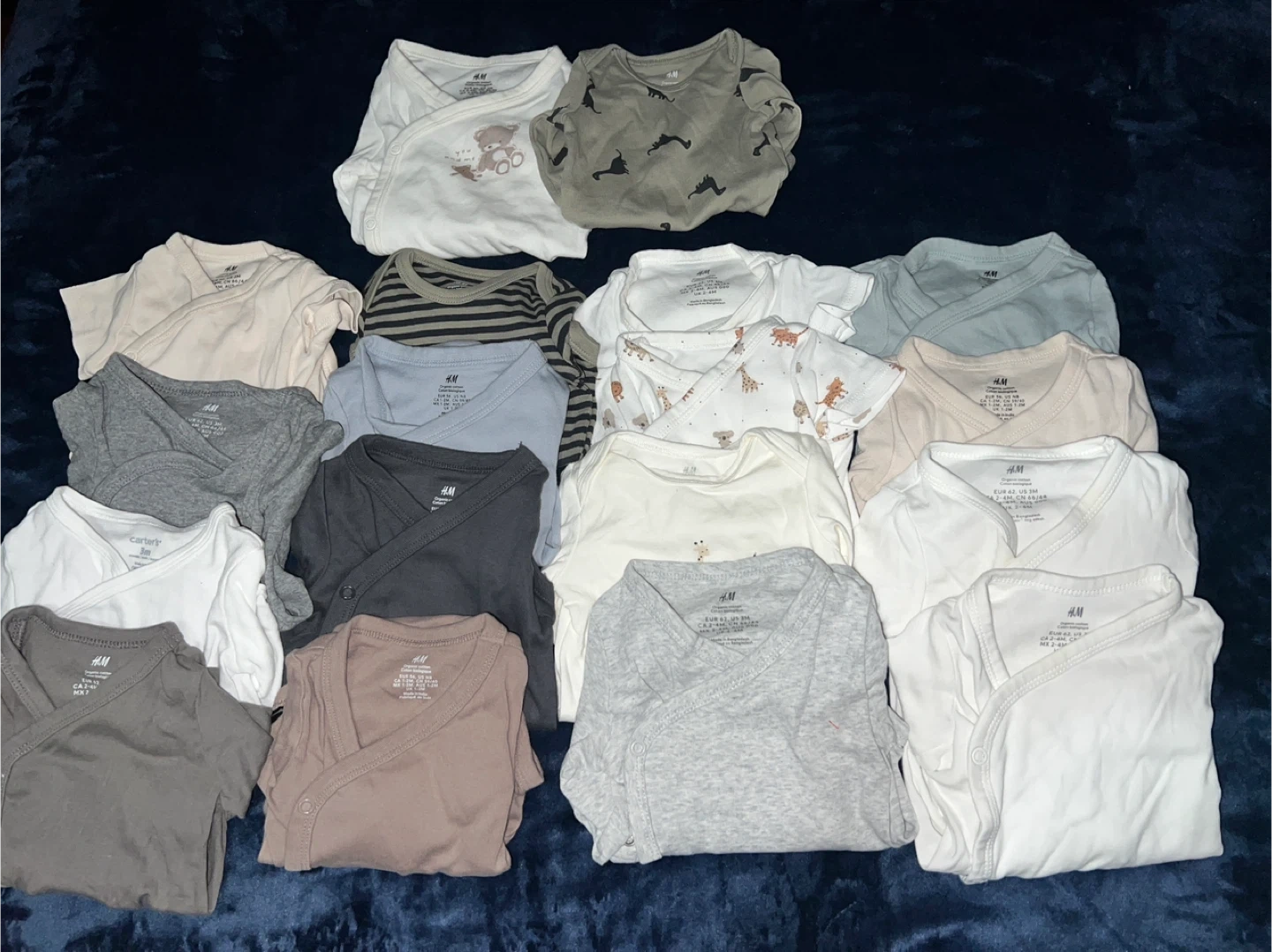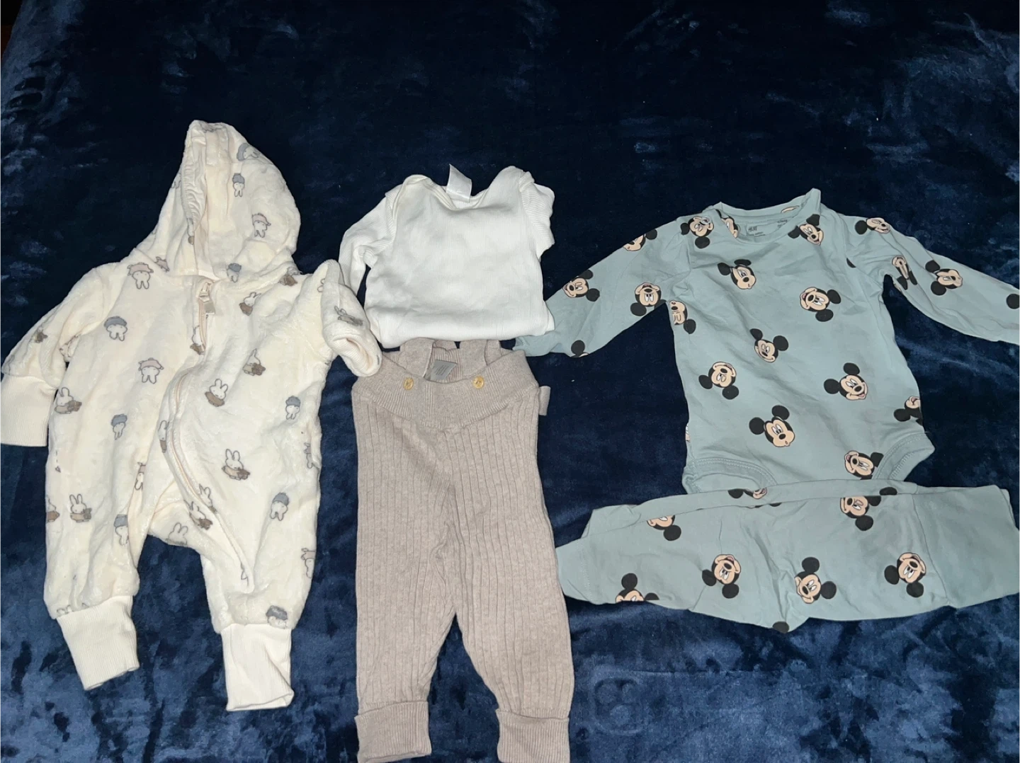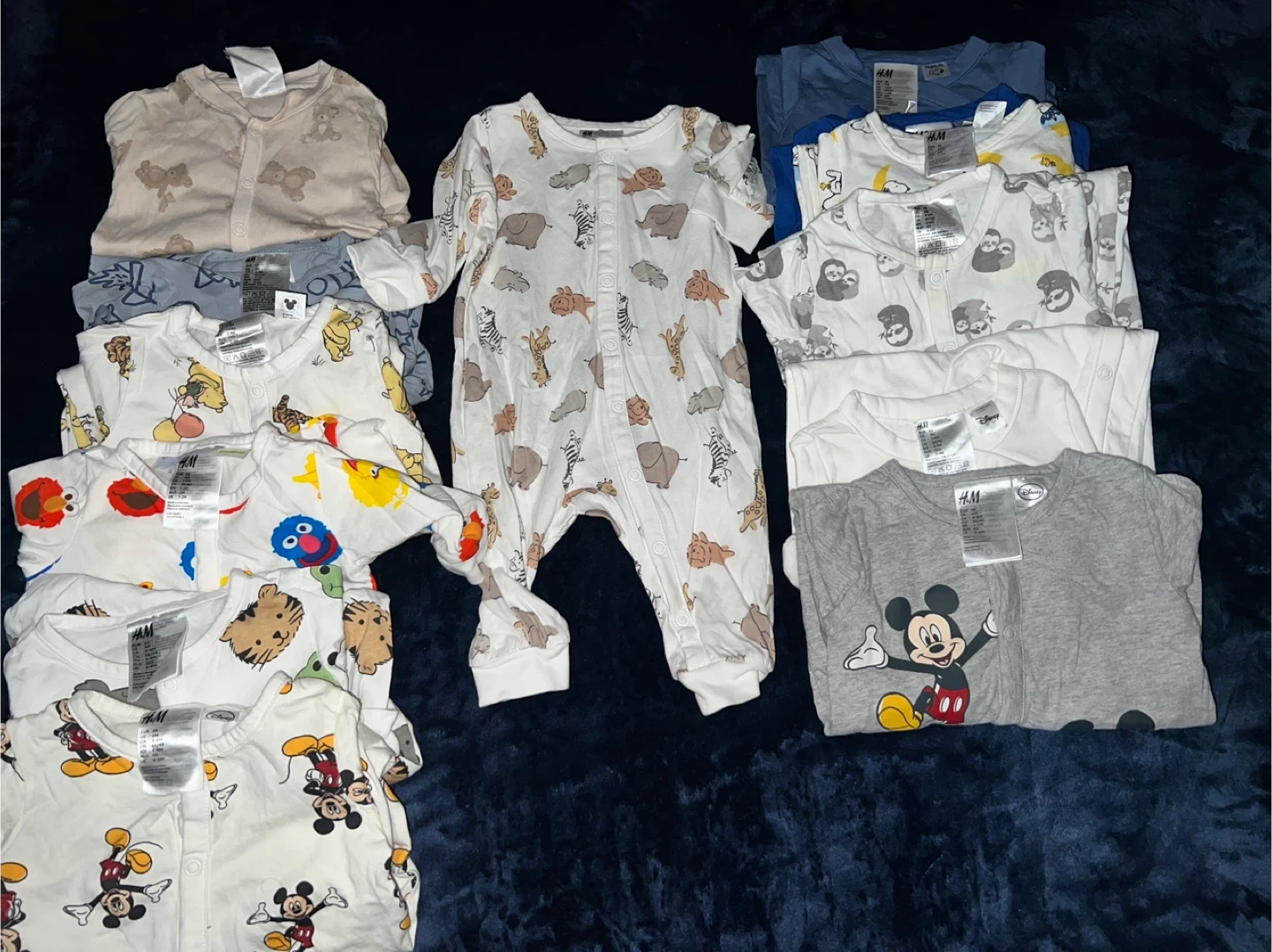 Selling a bundle of H&M baby clothes. There are a variety of sizes and styles included, like onesies, tops, pants, and sweatshirts. All are in great condition and ready for a new home!