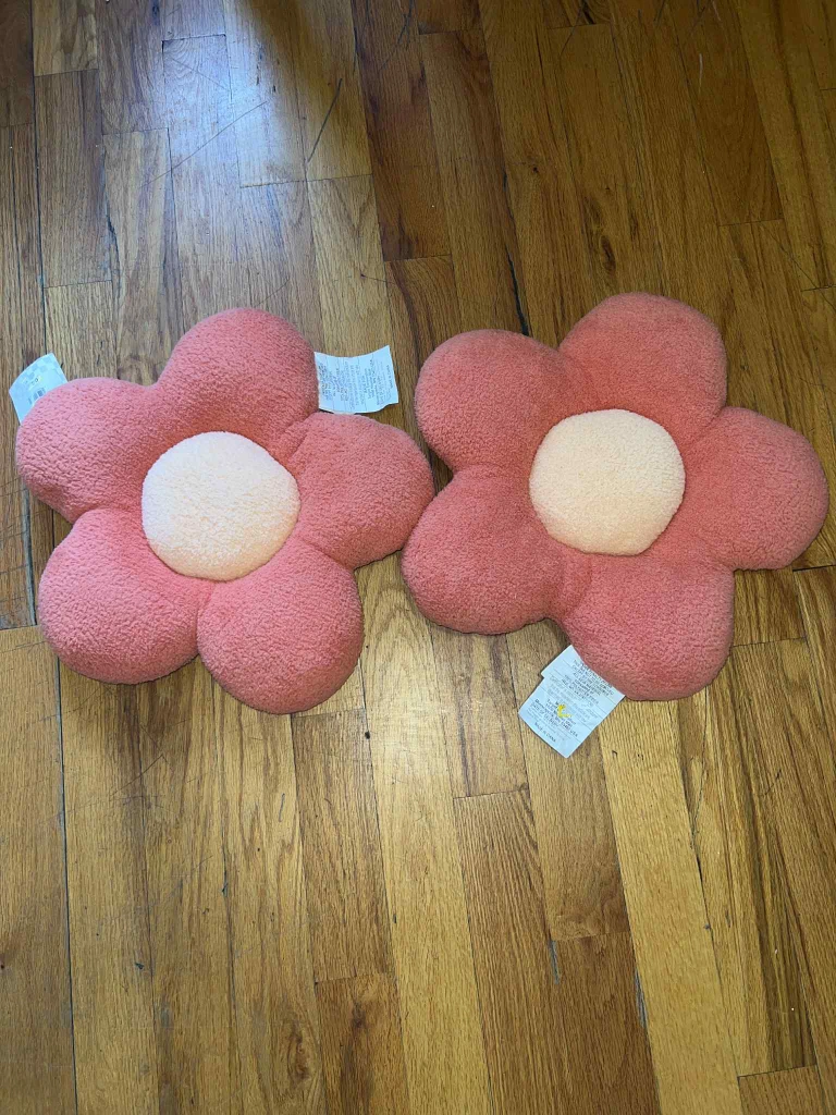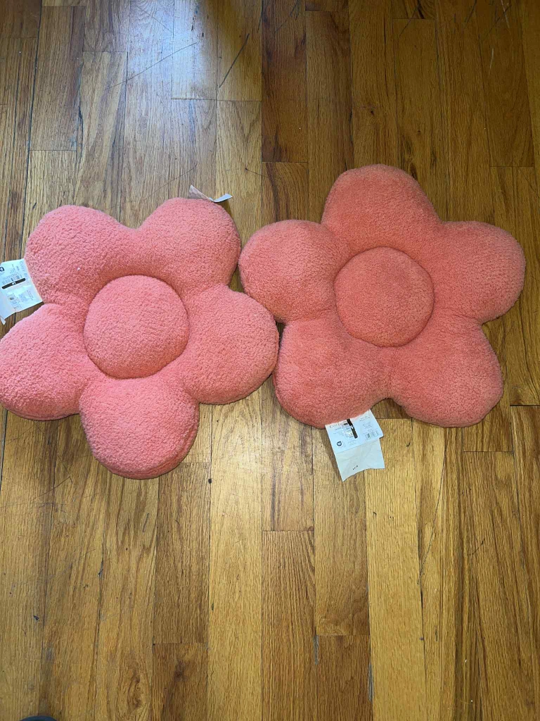 Selling a set of two adorable flower-shaped cushions from H&M Home! They're in a lovely coral color and are super soft and plush. Perfect for adding a touch of whimsy to any room