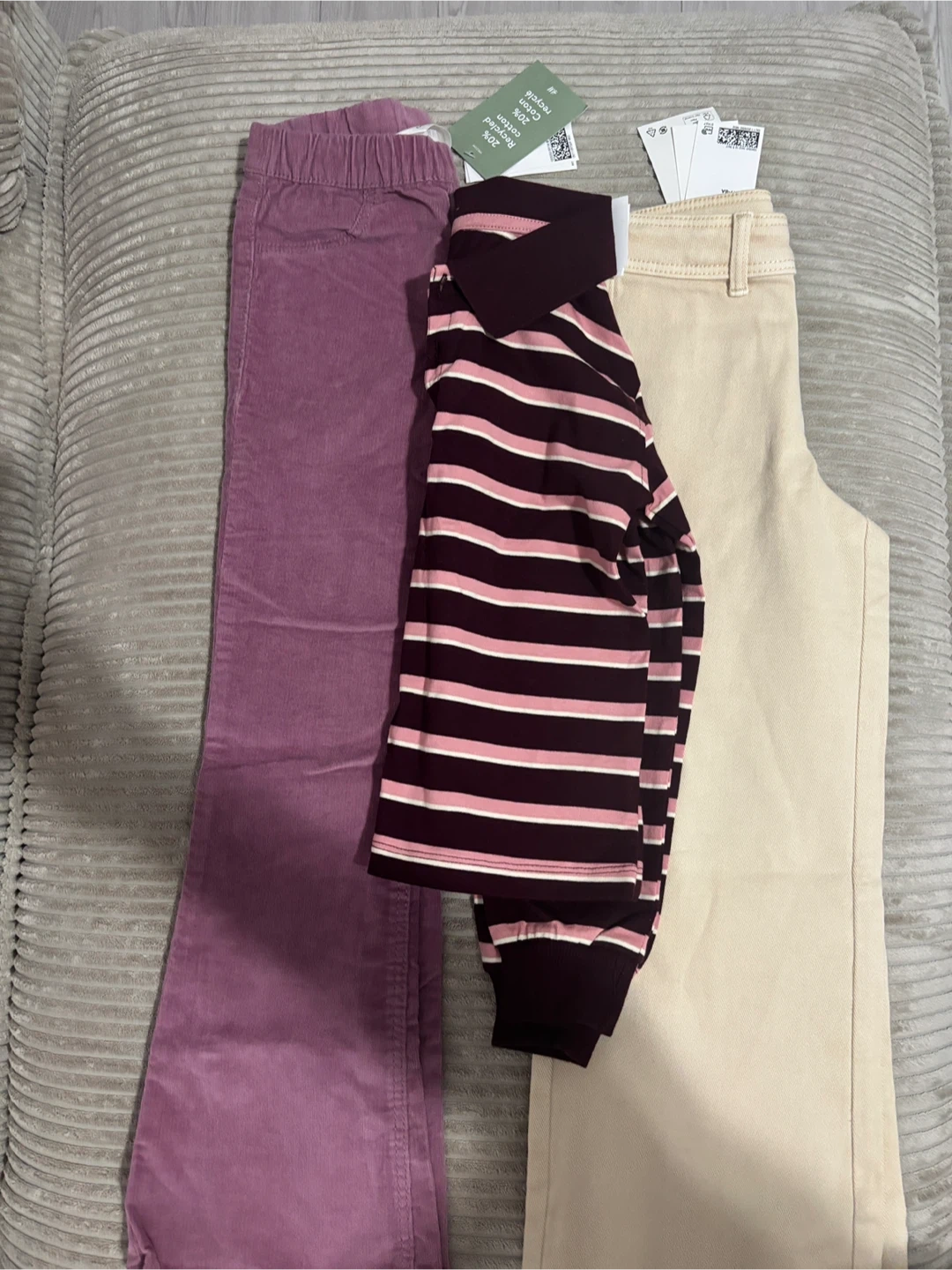Selling a bundle of girl’s clothes from H&M! Includes a long-sleeved striped shirt and two pairs of pants. All in brand new with tags! Size 7 girls.