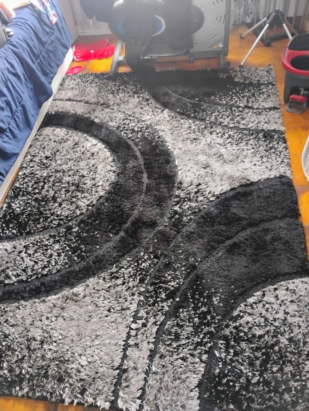 Shaggy Rug - Black and Grey Swirl Pattern