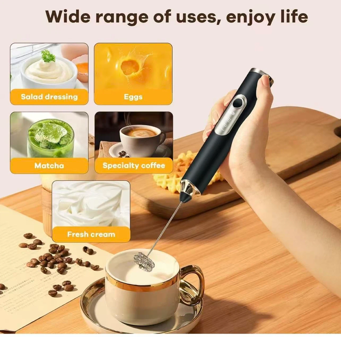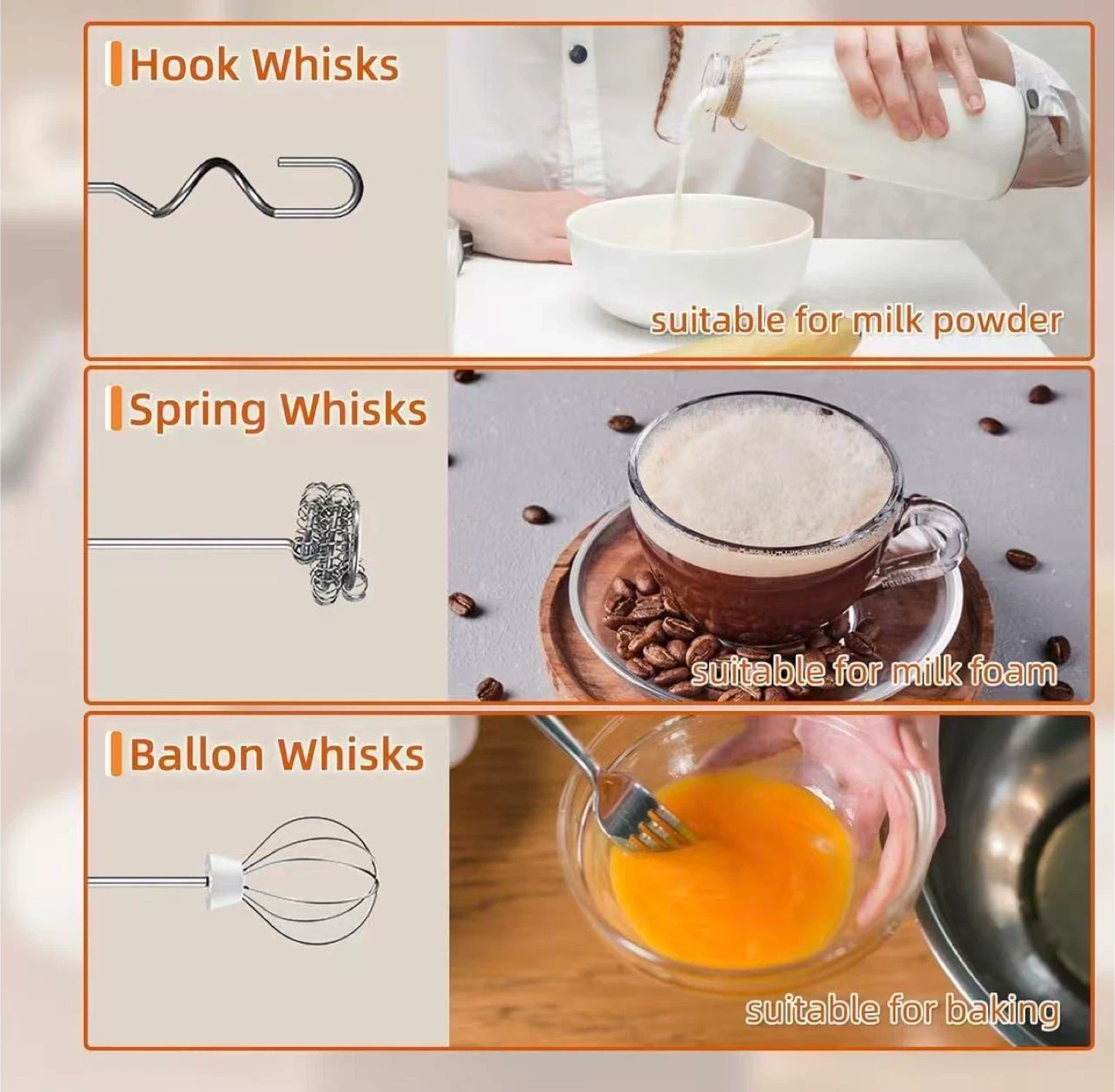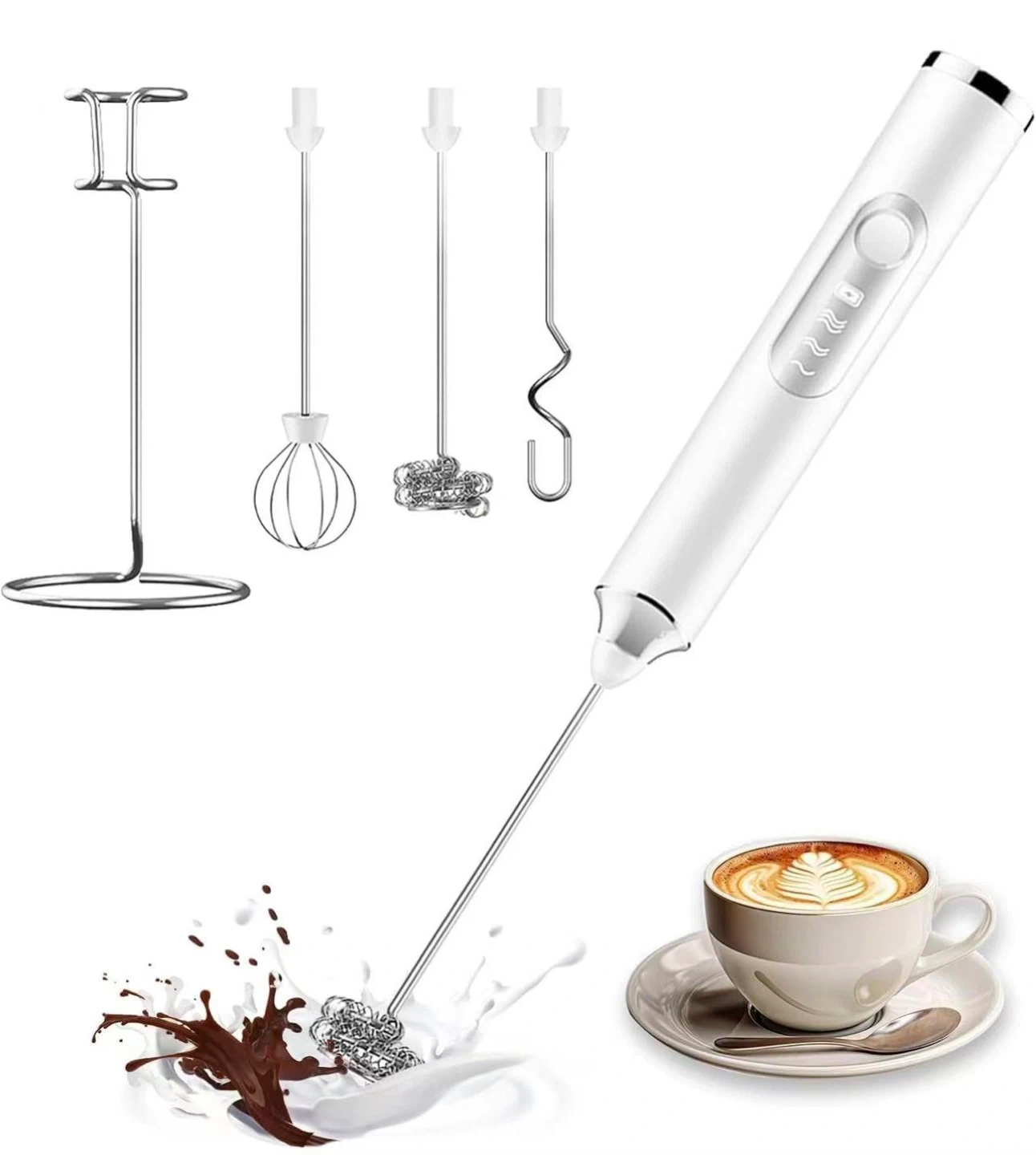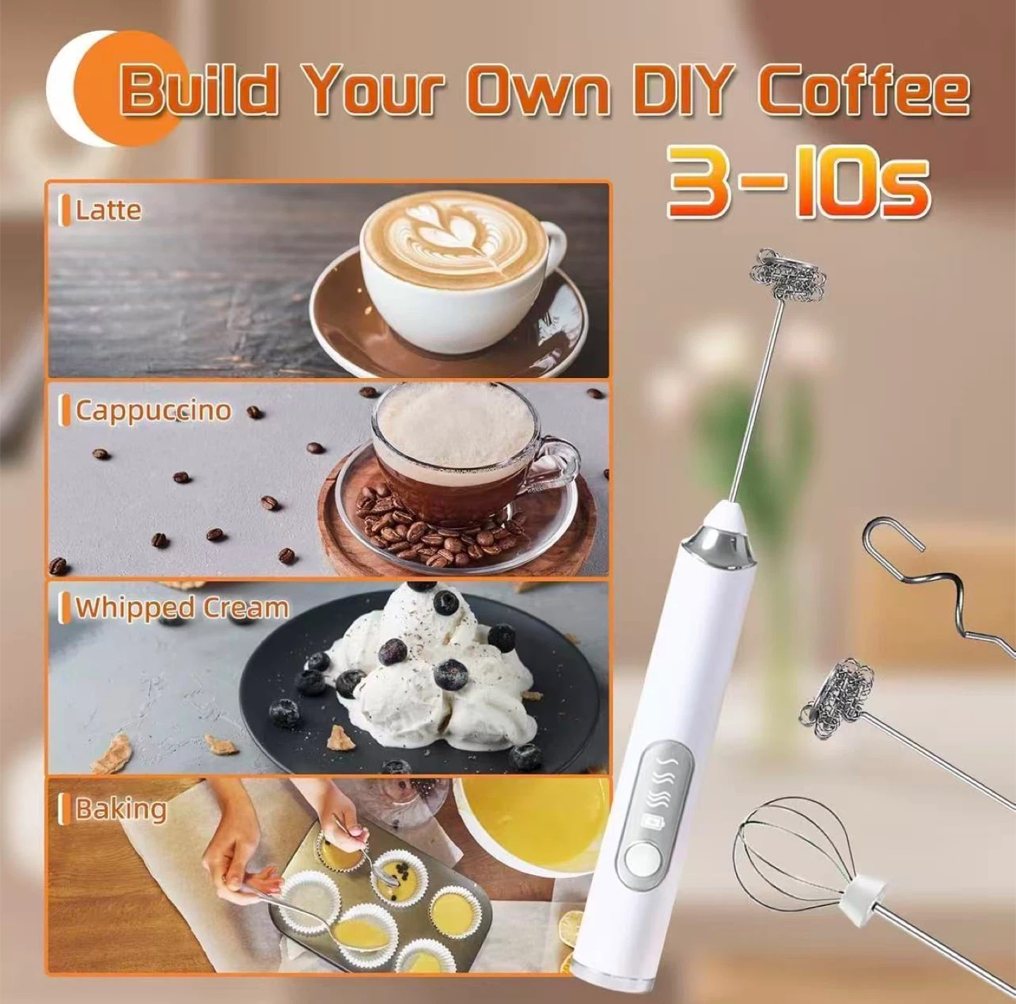 Handheld Milk Frother, 3 Heads , Milk Frother Rechargeable, 3 Speed Adjustable Coffee Mixer Electric Handheld, Electric Whisk With Stand for Powder Drinks,Rechargeable Frother with Stand