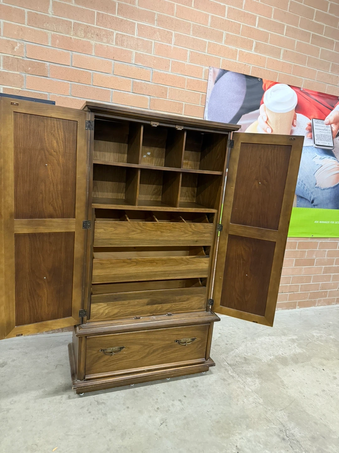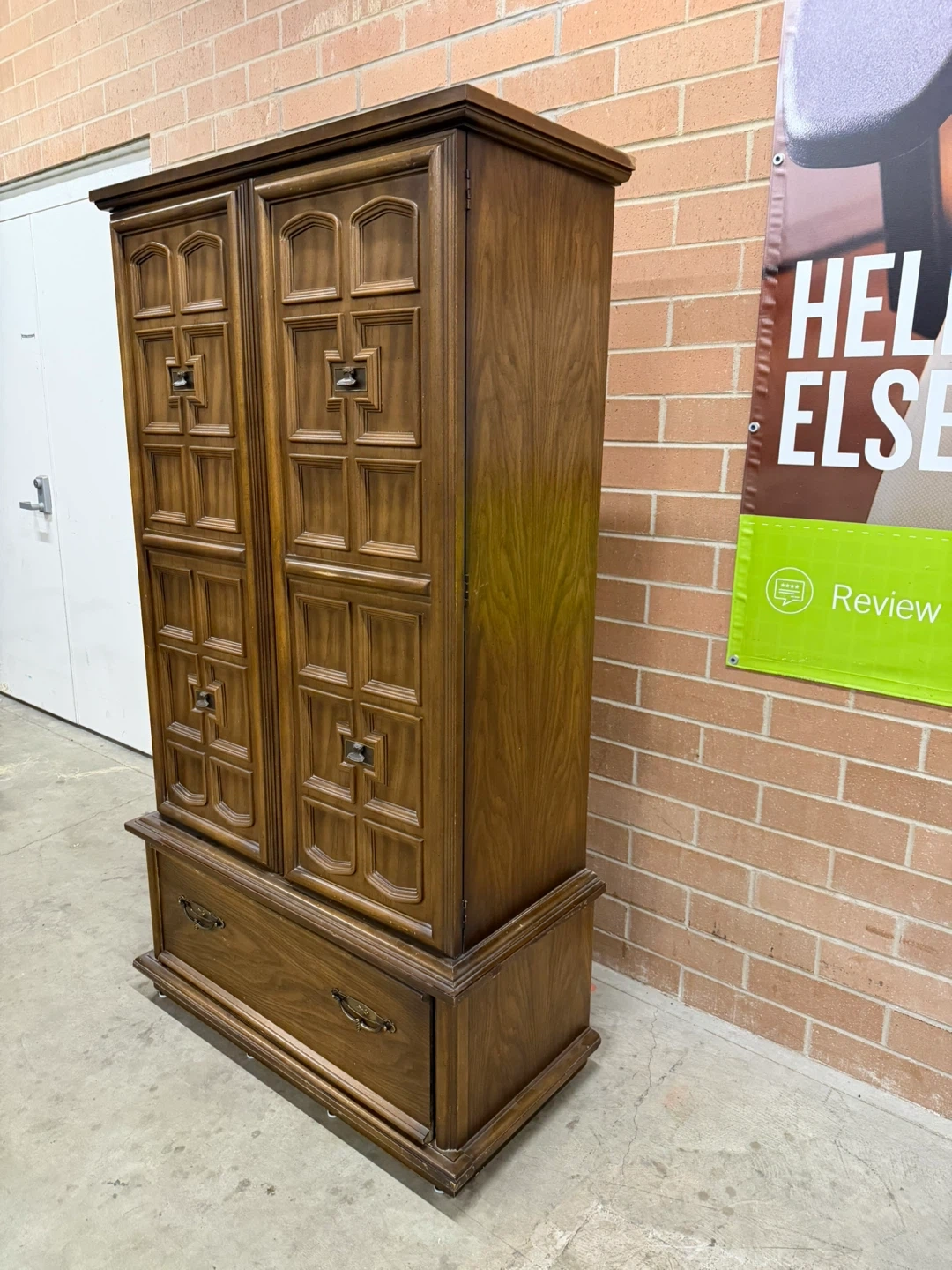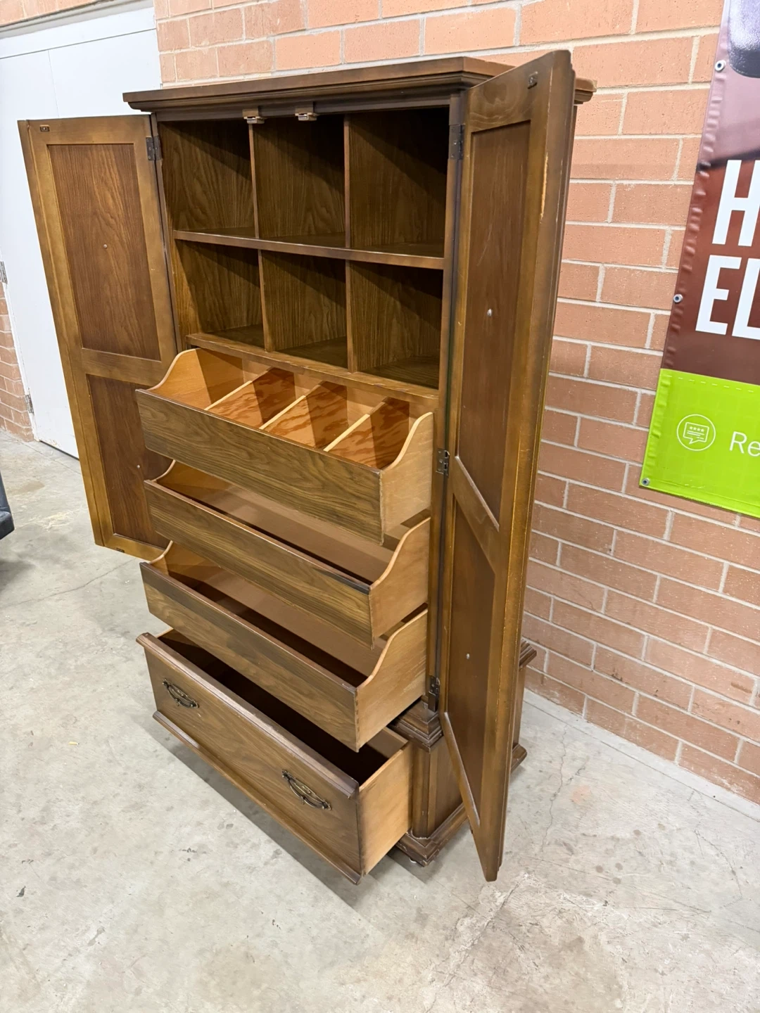 Vintage Wooden Armoire Cabinet with Drawers and Shelves
