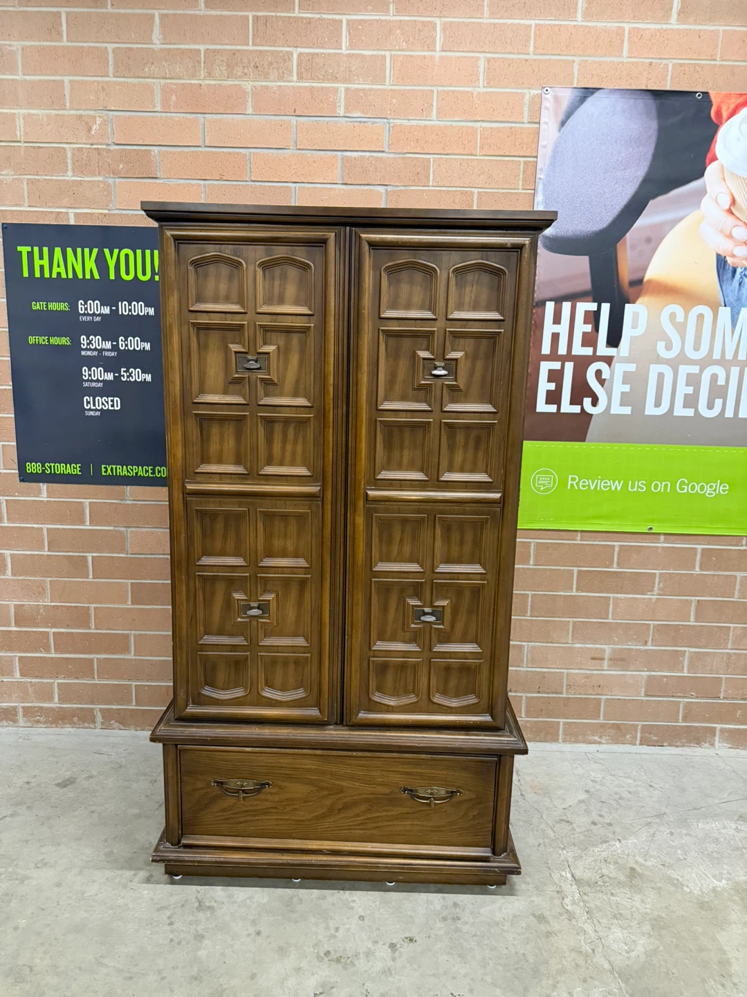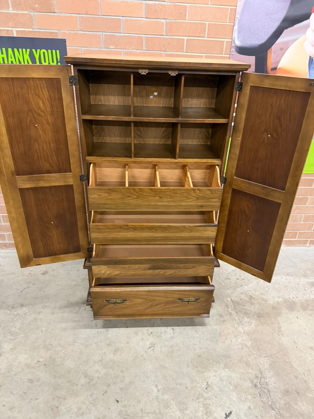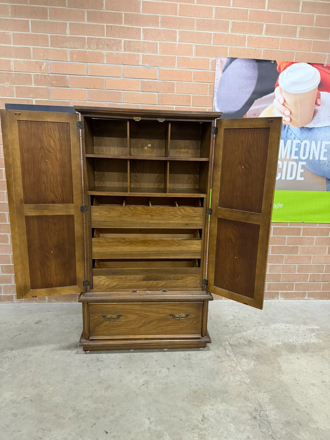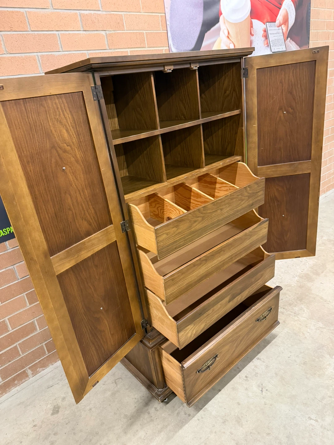 Vintage Wooden Armoire Cabinet with Drawers and Shelves