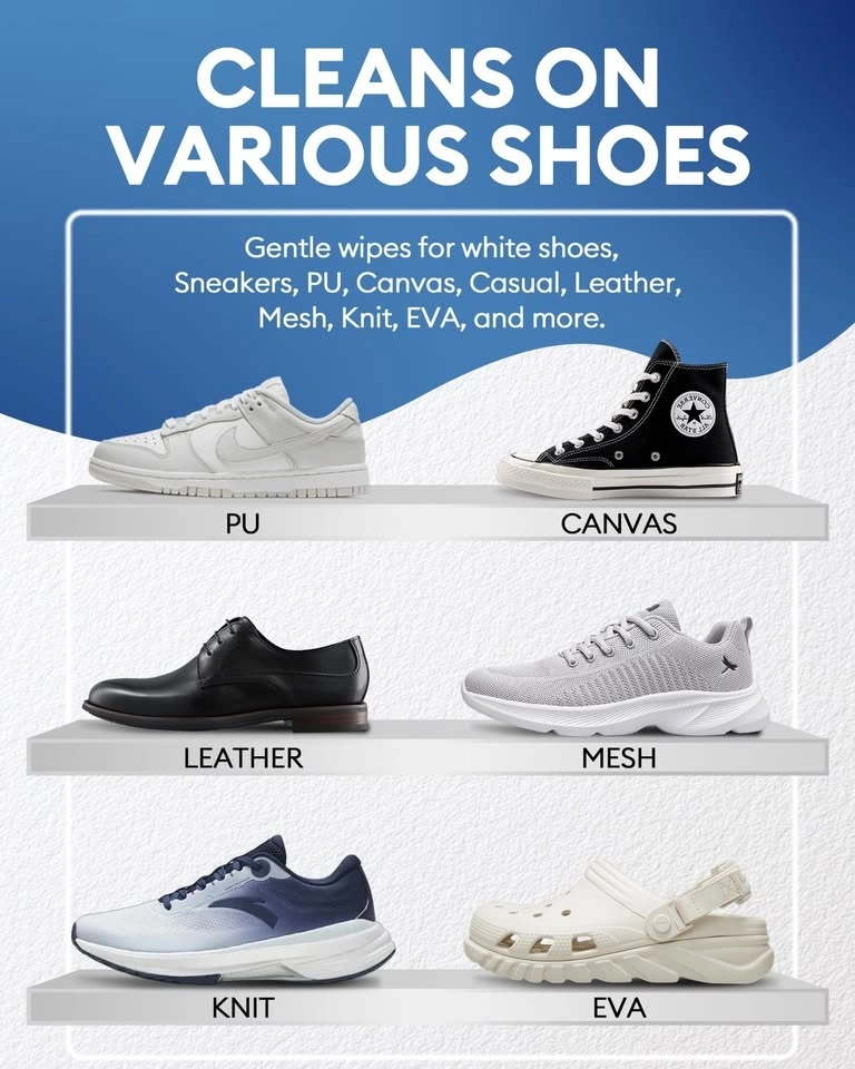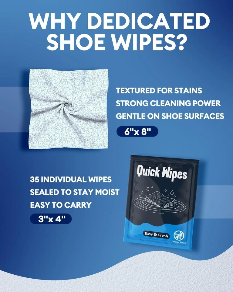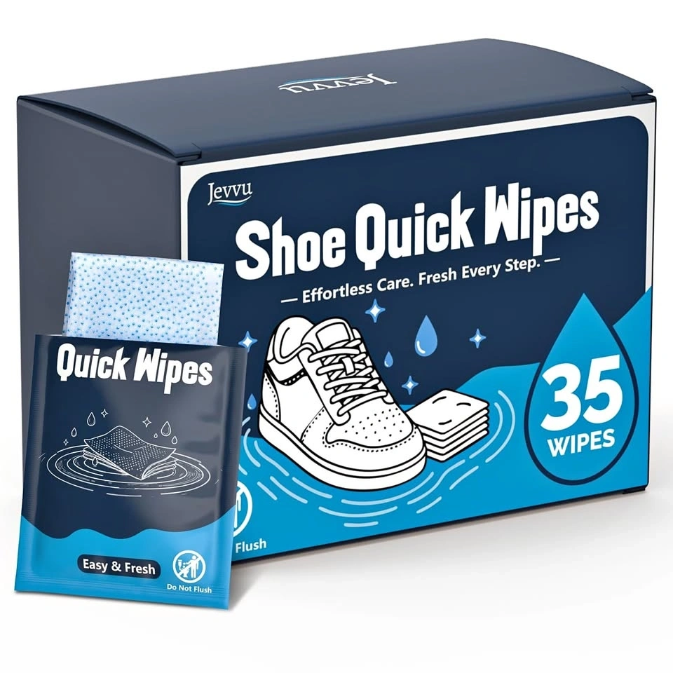 Convenient Jevvu Shoe Quick Wipes! Got a box of 35 wipes, perfect for keeping your sneakers fresh. These wipes are dual-textured, one side for a deep clean and the other for a nice refined finish. Super easy to use, great for quick clean-ups on the go. Keep 'em in your bag for sport, travel, or even at the office. No more dirty shoes!