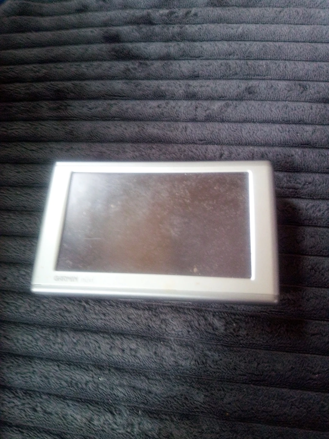 Garmin Nuvi GPS device. This portable navigator is silver and features a touchscreen display. It's great for road trips or everyday driving! Includes GPS unit.